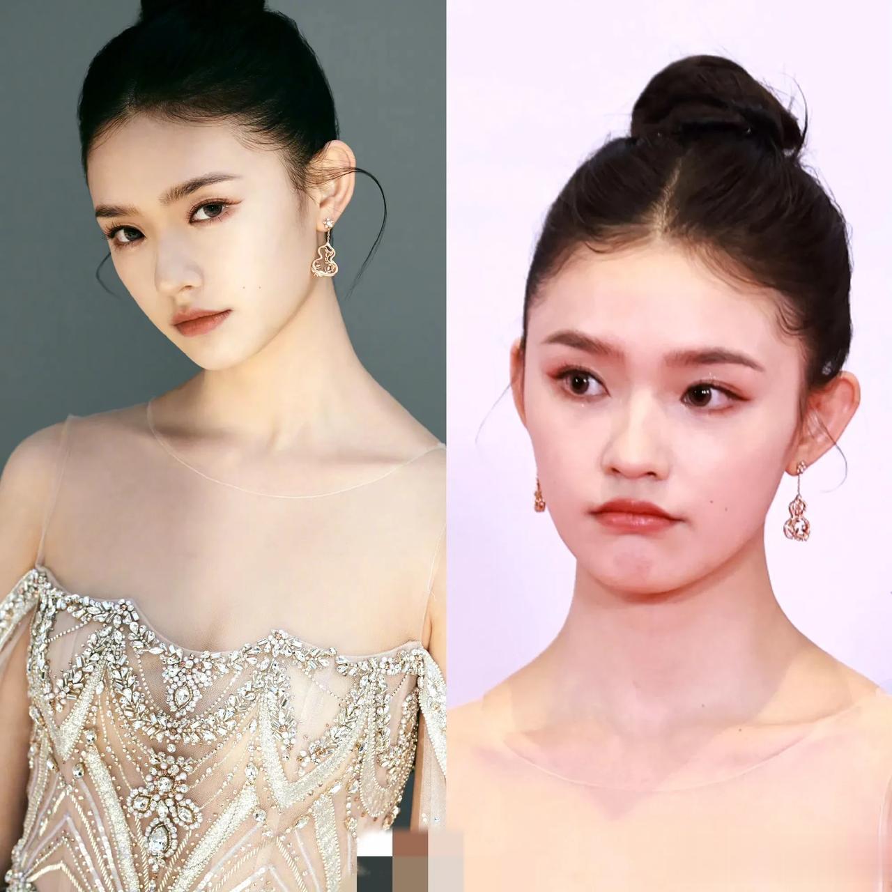 女明星红毯脸部大对比 左:精修 右:生图 最让人意想不到的居然是她 江疏影,