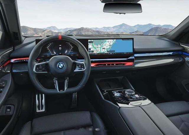 外观方面,从图中可以看出,新款宝马i5的外观造型采用的是全新的风格设计,整体造型与现的宝马5系差别还是很大的,新款车型的外观造型看起来更加运动,前脸部分看起来十分凶悍,采用俯冲式的造型设计,搭配三角式的大灯组以及封闭式的进气格栅,搭配M版本的运动包围,处处都在彰显它的运动气息。