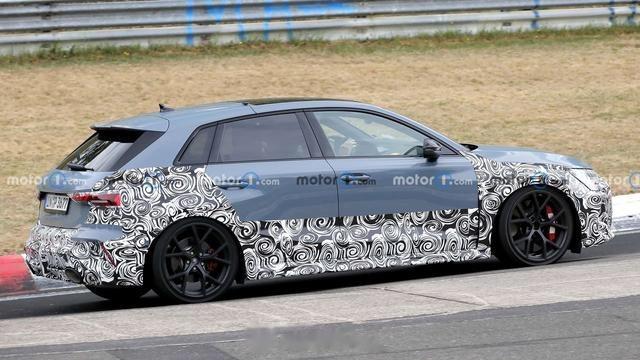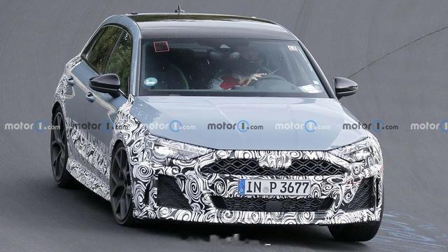 奥迪RS3 Sportback的伪装车在纽博格林赛道测试时被拍到了谍照,从谍照上看这辆测试车隐藏了重新设计的前保险杠。
