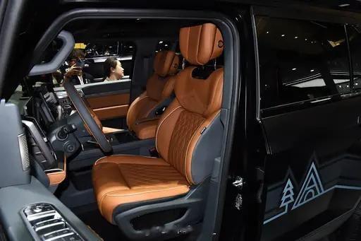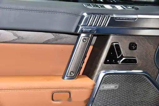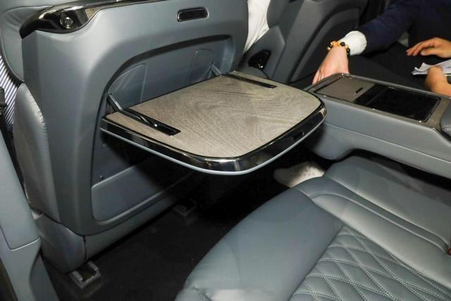 猛士917的座椅精选Nappa真皮材质包裹,触感柔软舒适,能够给予腰部和腿部充分的承托性。而且主副驾以及第二排座椅都拥有电动调节功能,可实现加热、通风、按摩等功能。主副驾的腰部、腿托和头枕都可以根据用户自身习惯进行一定的调整。后排如果需要的话,再加3000元就可以装上小桌板。