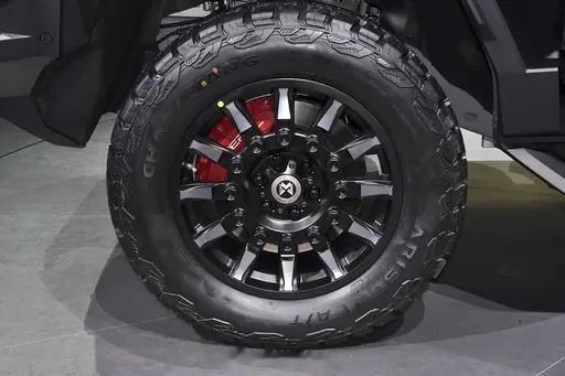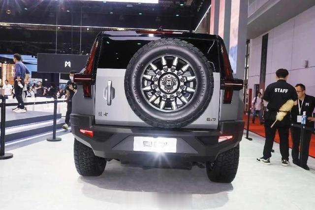 光听名字就知道这是一款“硬汉风”的车型,猛士917的外观非常粗犷,前脸元素复杂,大尺寸的进气格栅,内部为蜂窝状结构,中间嵌入了造型别致的车标。两侧的日间行车灯为十字形,尤其是点亮之后更显锋芒。猛士917的车头采用了大量的折线勾勒,再搭配上钛金灰磨砂质感涂装,呈现出浓烈的机甲风格,非常具有攻击性。