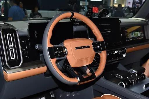 和张狂霸气的外观不同,猛士917的内饰明显“收敛”多了,15.6英寸的悬浮式中控屏+12.3英寸的副驾驶娱乐屏+12.3英寸的全液晶仪表,三块大屏的组合迎合了当前的主流审美。不过猛士917在座舱的设计上增添了不少让人眼前一亮的元素,比如将空调出风口设计成烽火台样式、飞行器换挡手柄以及手枪造型的扶手设计等。