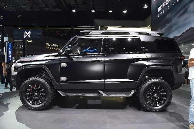 猛士917的侧面也是十足的硬派,车顶比较平直,车身棱线分明。前后20英寸的防脱圈轮毂、巨大的车门踏板,再加上夸张的车顶行李架,尽显硬派越野气质。车身尺寸方面,猛士917的车长4987毫米,宽度达到了2080毫米,高度为1935毫米,同时有着2950毫米的超大轴距,在2+3的5座布局下,前后排的驾乘空间自然无须担心。