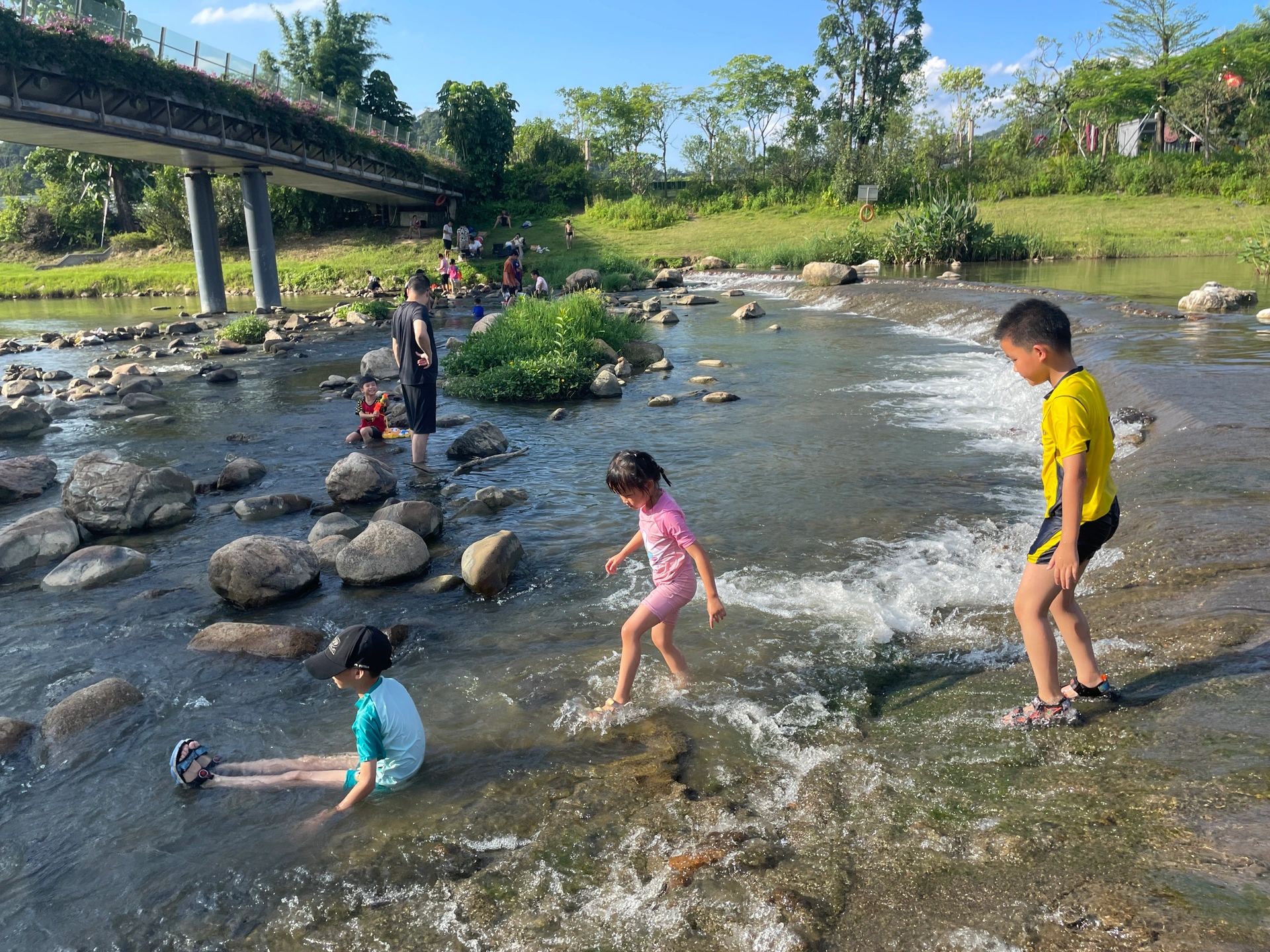 在从化的第二天,去了📍上水精品设计酒店,在鸭洞河网红玩水点的岸边