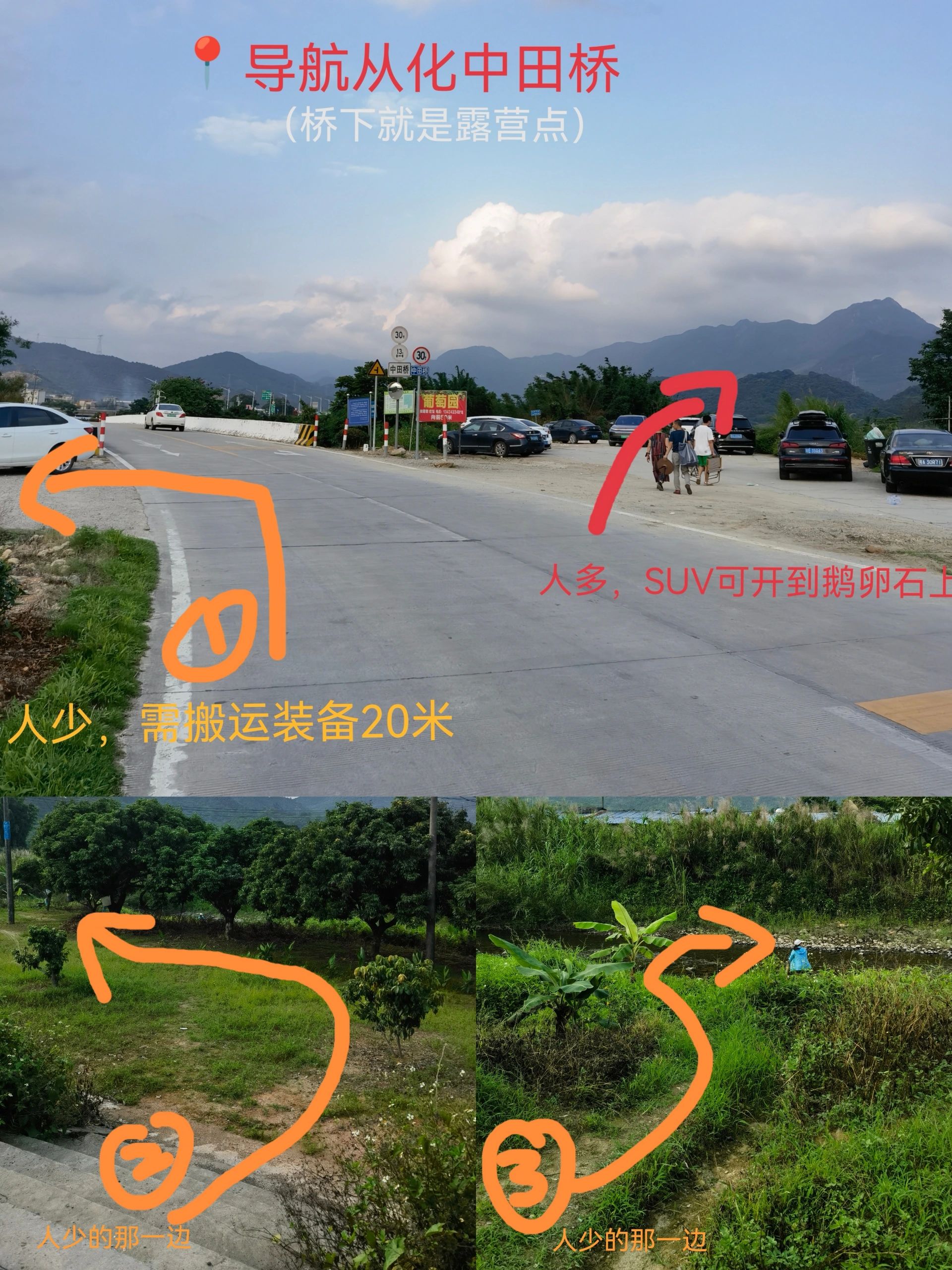 地点:📍从化中田桥 野营地依山傍水风景不错,所以周末很多人去露营,探路时发现周边有一个人少的河流 搬运装备也还算方便,关键是水质清凉干净(图附路书) ✅可免费停车 ✅可生明火 ✅可带狗狗🐶 ✅可网小鱼🐠 ✅可搭帐篷天幕 ❌无自来水 ❌无洗手间 💢水质还是挺干净的,但是车可开到鹅卵石的那一侧周末人很多!!!! 想要好位置可参考最后两张图,去另一侧图 最后,无痕露营,尽可能多的带走现场的垃圾,爱护环境,从我们做起。