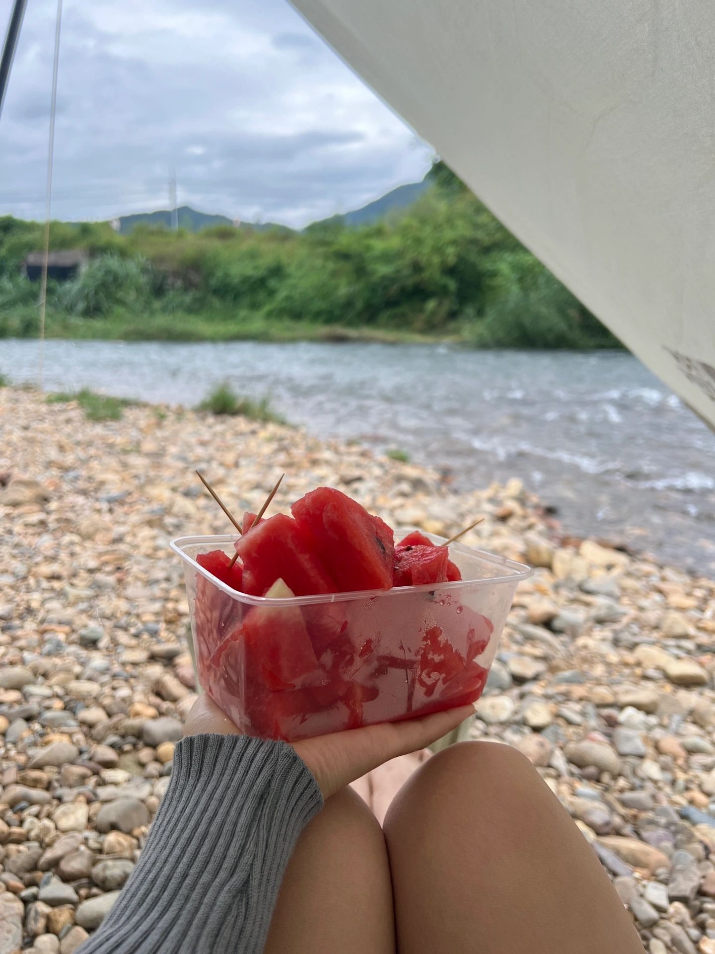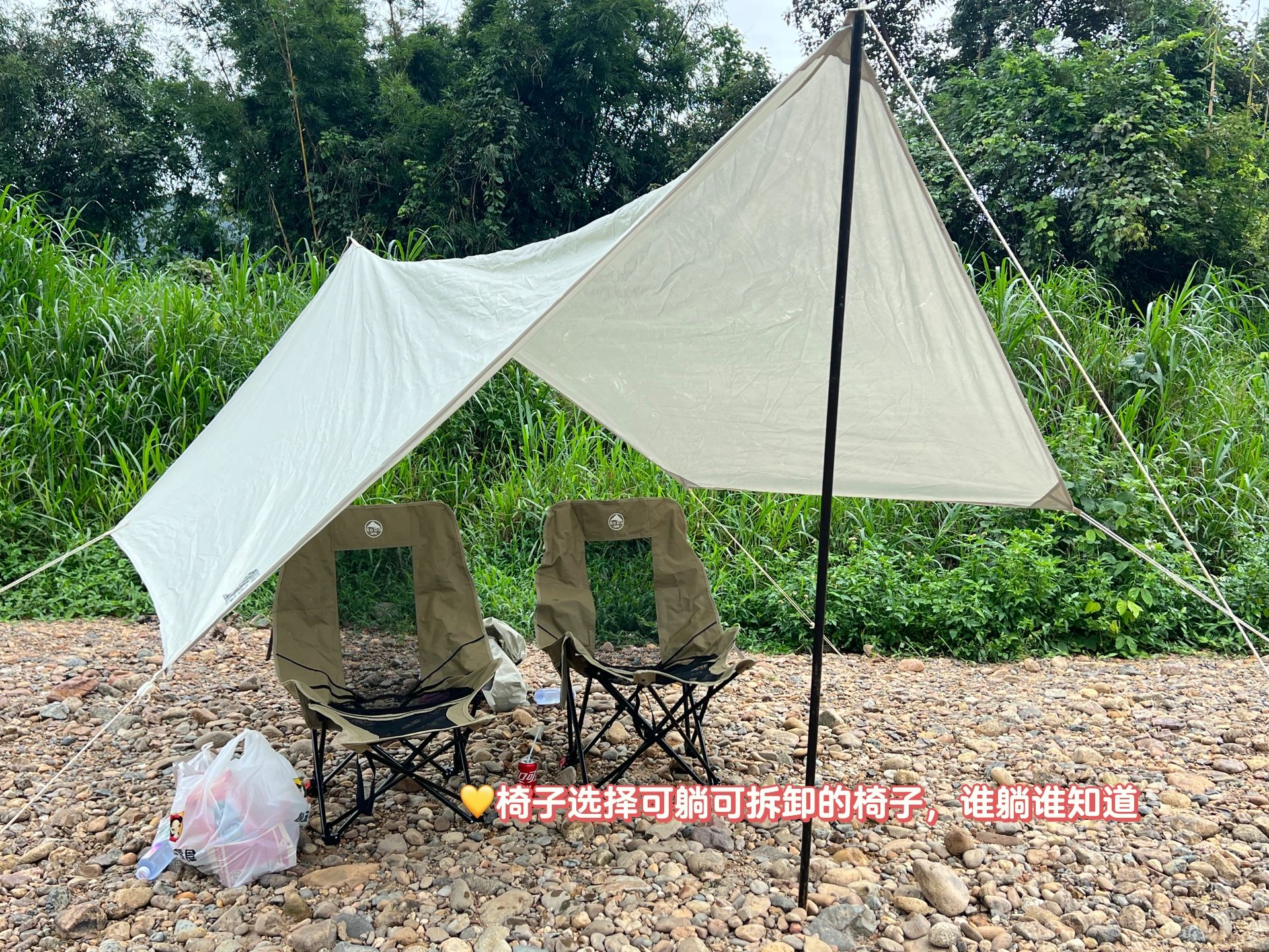 两把可折叠躺椅 一条不湍急的小河,能驻扎的平地 肥宅快乐水 从化中田桥(就在桥下,停车方便) pls:①没有天幕和帐篷⛺的去便利店租赁,大小都有,老板娘喊价100,大家可以大叨(40💰也是可以的) ②水果最好自己带,本地🍉不咋建议购买 ③🏕️的时候会有两个小孩过来要东西吃,大家可以给也可以不给(反正我挺烦的😒),一天美好的不美好记忆。 总之整体体验感还不错,下了点小雨在帐篷里听着白噪音,很安逸,是白羊座拒绝不了的自由。