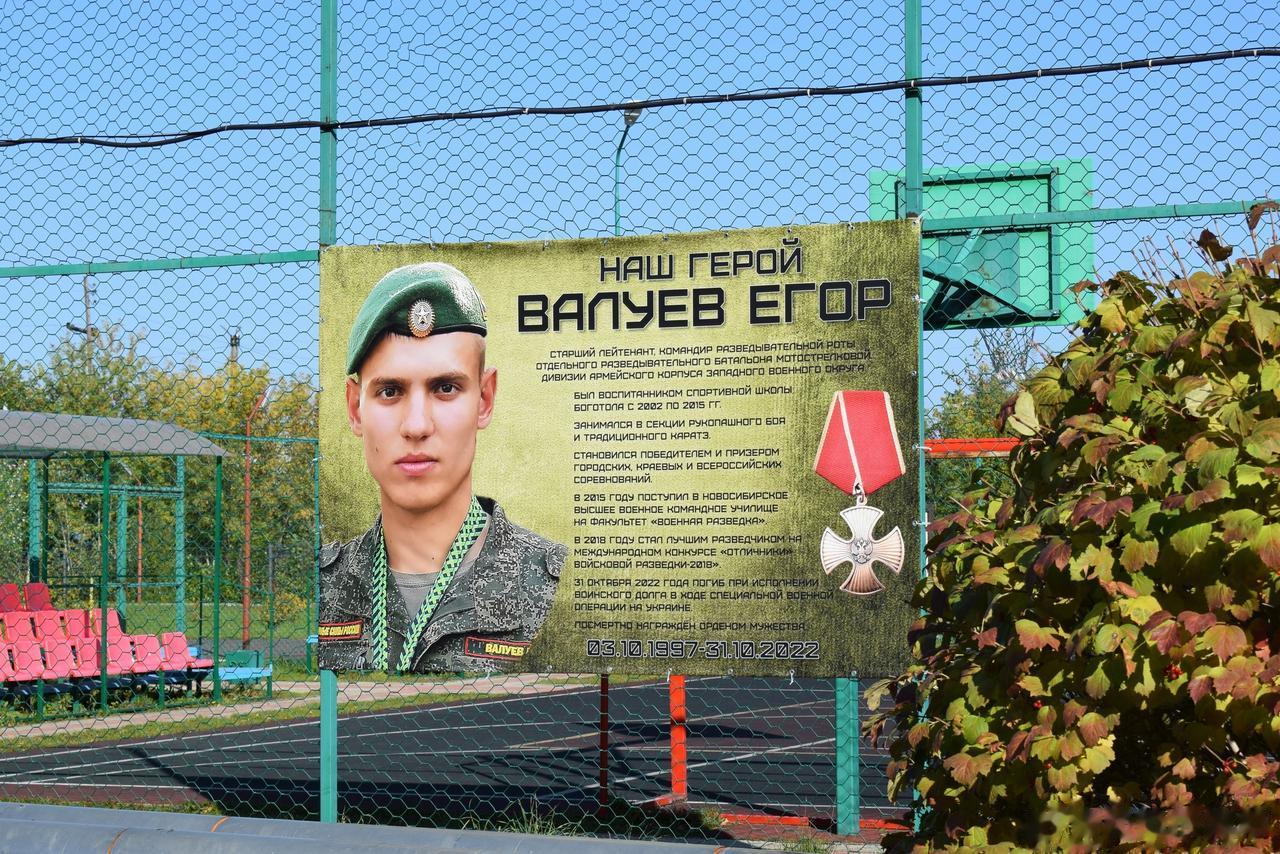 俄军士兵叶戈尔-瓦卢耶夫,1997年出生,2022 年 10 月 31 日在乌克兰阵亡,职务是俄军西部某军区摩托步枪师独立侦察营指挥官,级别为高级中尉。今年10月3日是他26岁生日,他毕业的中学特地选这一天为他举办了隆重的纪念活动,当地重要人物悉数到场,学校礼堂、教室外面、操场上挂了他的画像,让学弟学妹们向他学习,不知道是学习他的献身精神还是入侵他国的军事能力。这样年轻又长得那么精神,实在是可惜了。