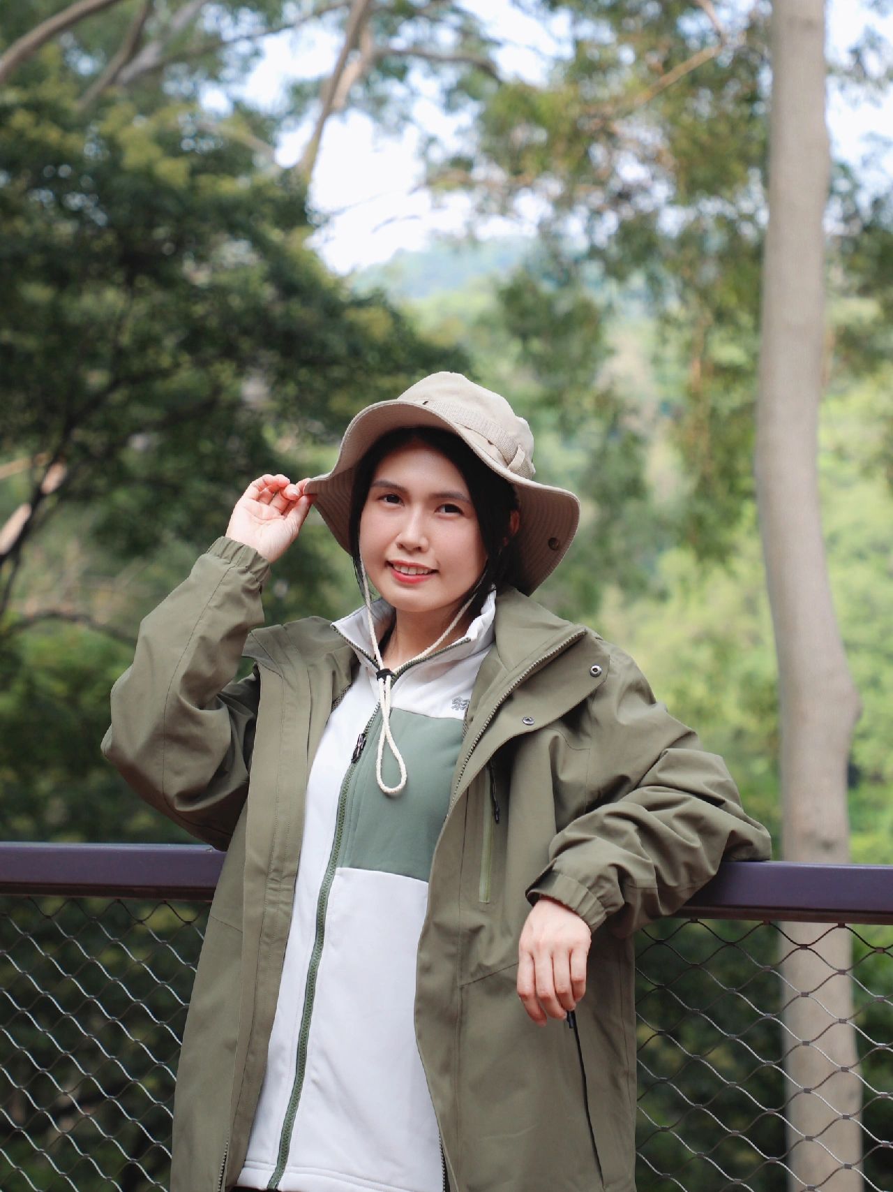 这次穿了可隆冲锋衣,防水透气,一衣三穿可拆卸,四季都适合,山系配色也好出片。