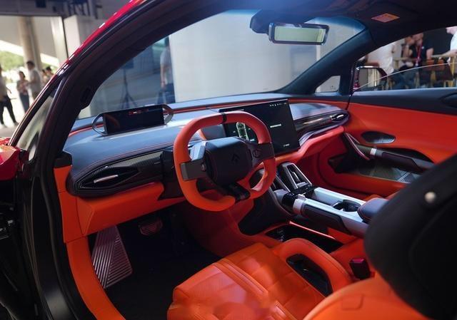 和大部分超跑一样,昊铂SSR的内饰干净简洁,不过整个结构还是挺立体的,有种机械感的味道。六边形的赛车式方向盘设计很有个性,座椅造型很酷。新车将会配备一个内嵌式的14.6英寸多媒体显示屏以及8.8英寸仪表盘,下方过道区域则采用了双塔样式的空调出风口,并同时配备了拨杆式的电子换挡机构。