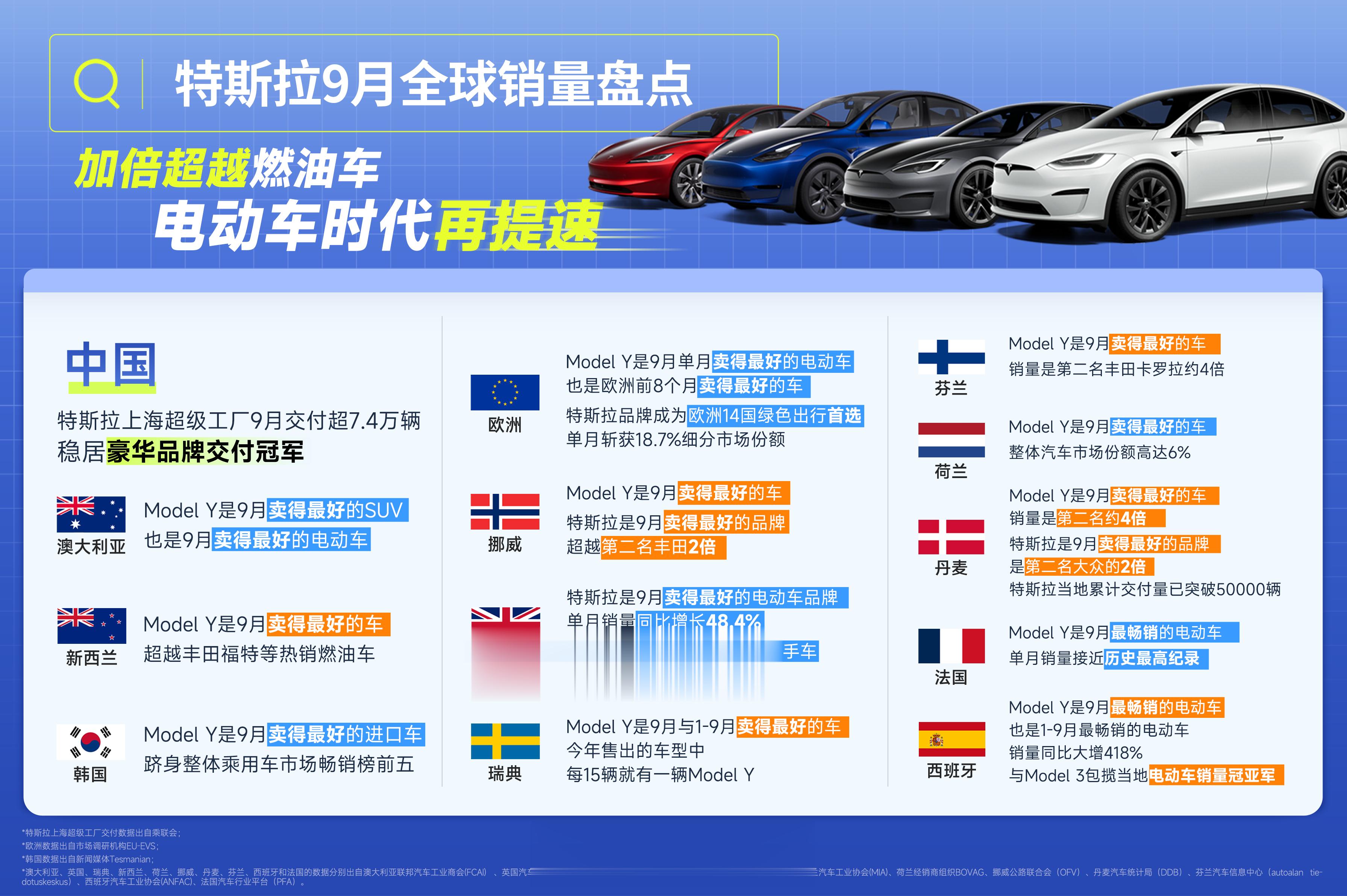 #特斯拉9月交付超7.4万辆# 10月11日,乘联会发布的销量数据显示,特斯拉上海超级工厂9月交付超7.4万辆稳居豪华品牌交付冠军,其中特斯拉Model Y 交付53,249辆,位居豪华品牌车型销量榜首。
