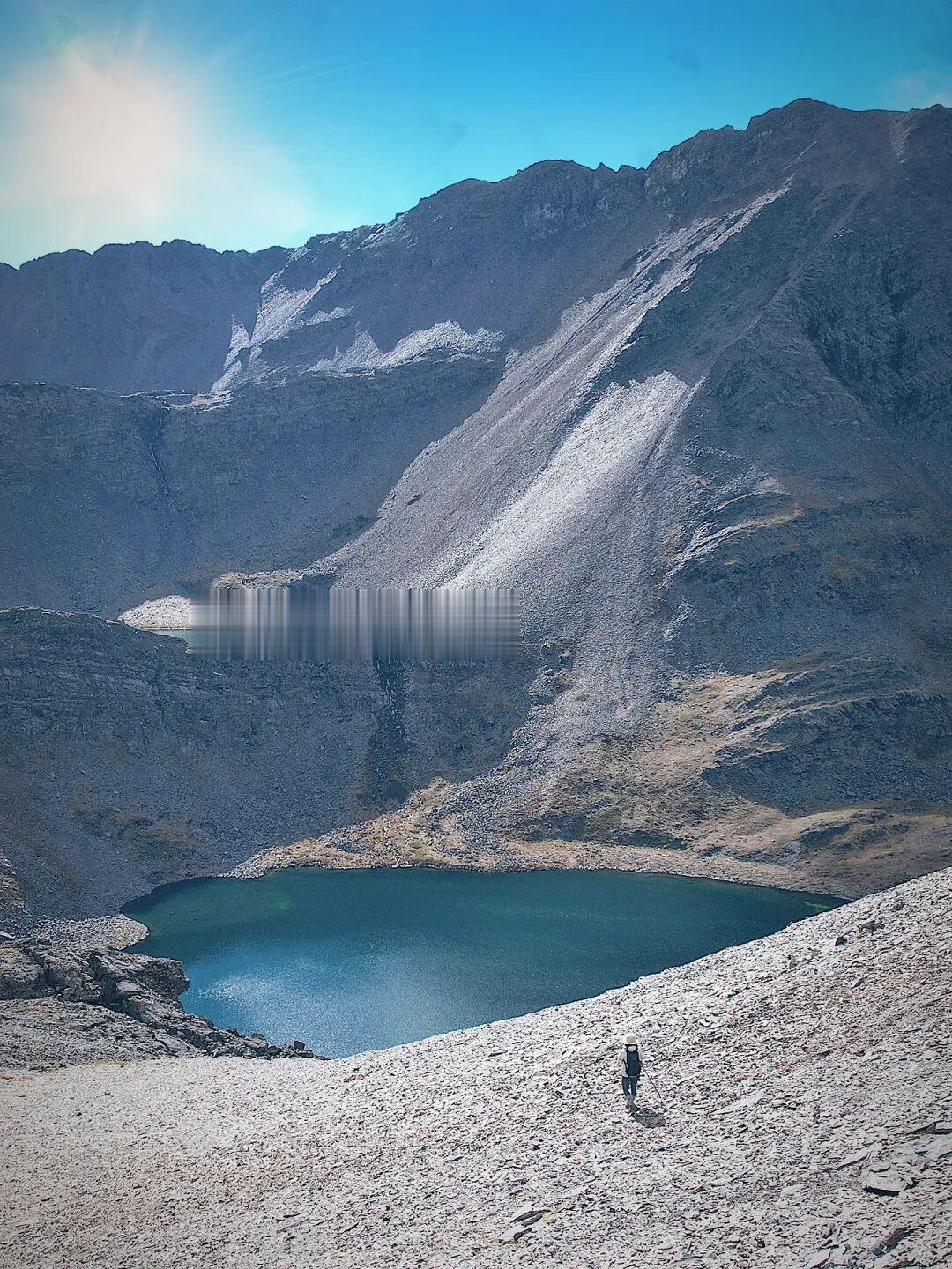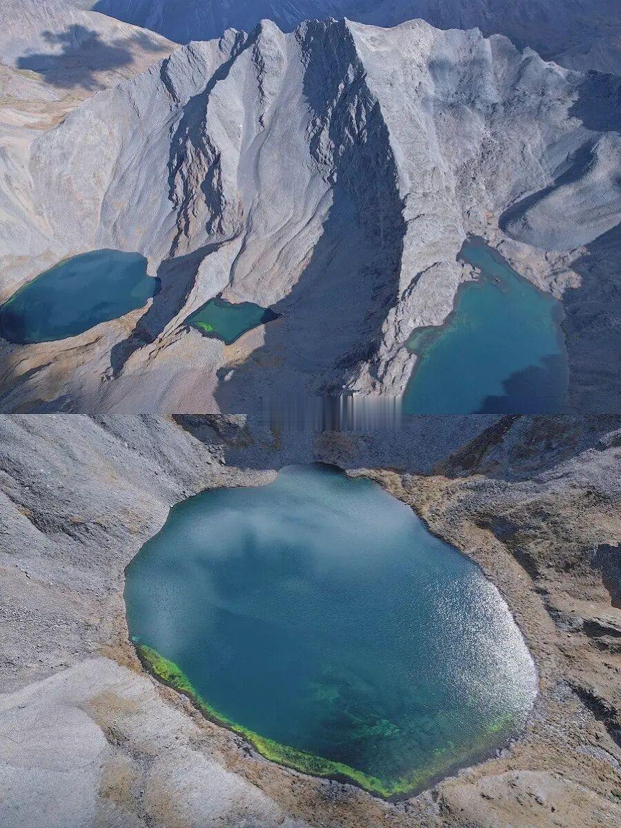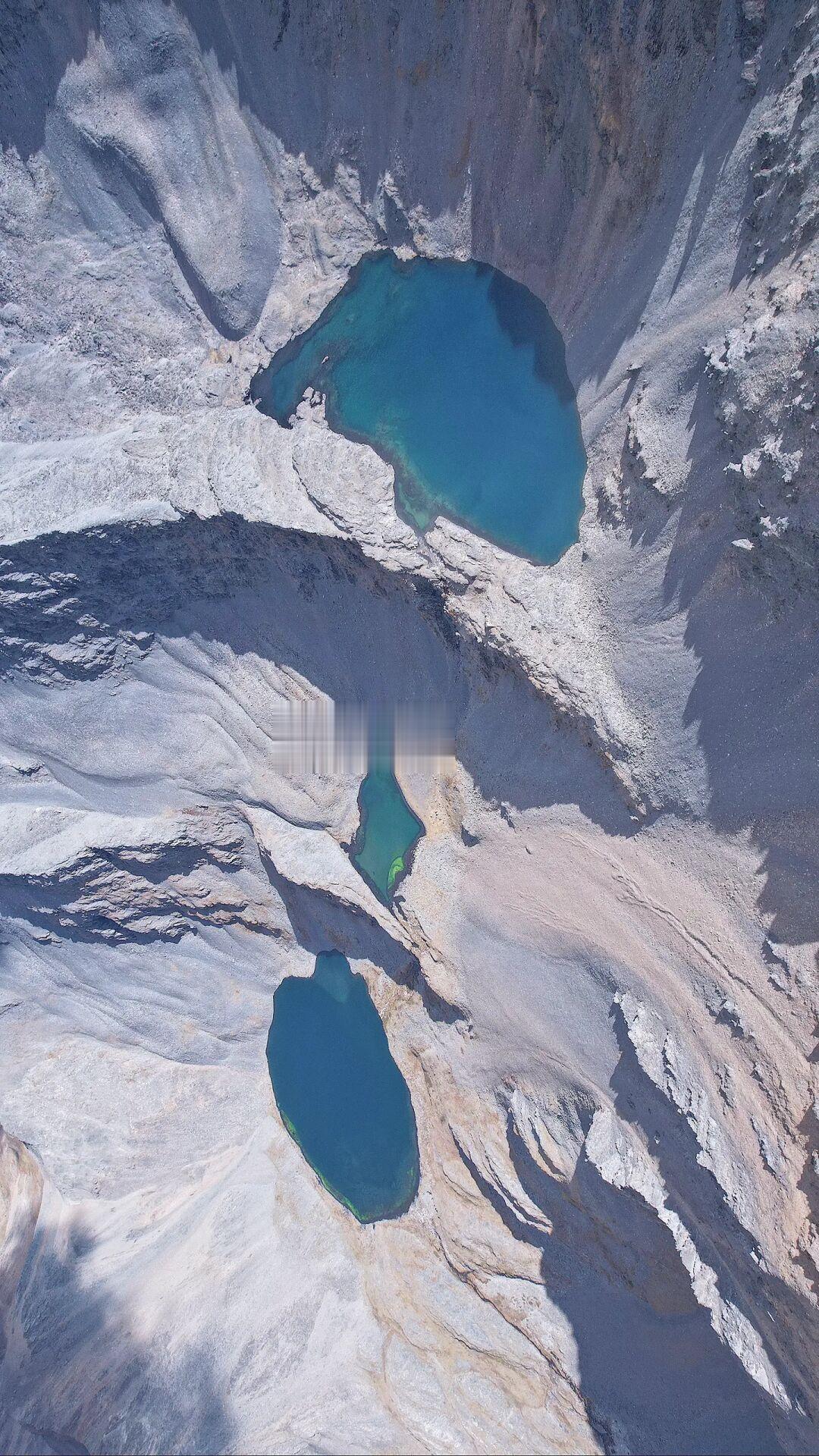 高海拔3层悬湖,天晴的时候从高往低处看,三层湖泊呈湛蓝💙绿💚深蓝💙,阳光落下之后,湖泊又回到神秘的黑蓝色.