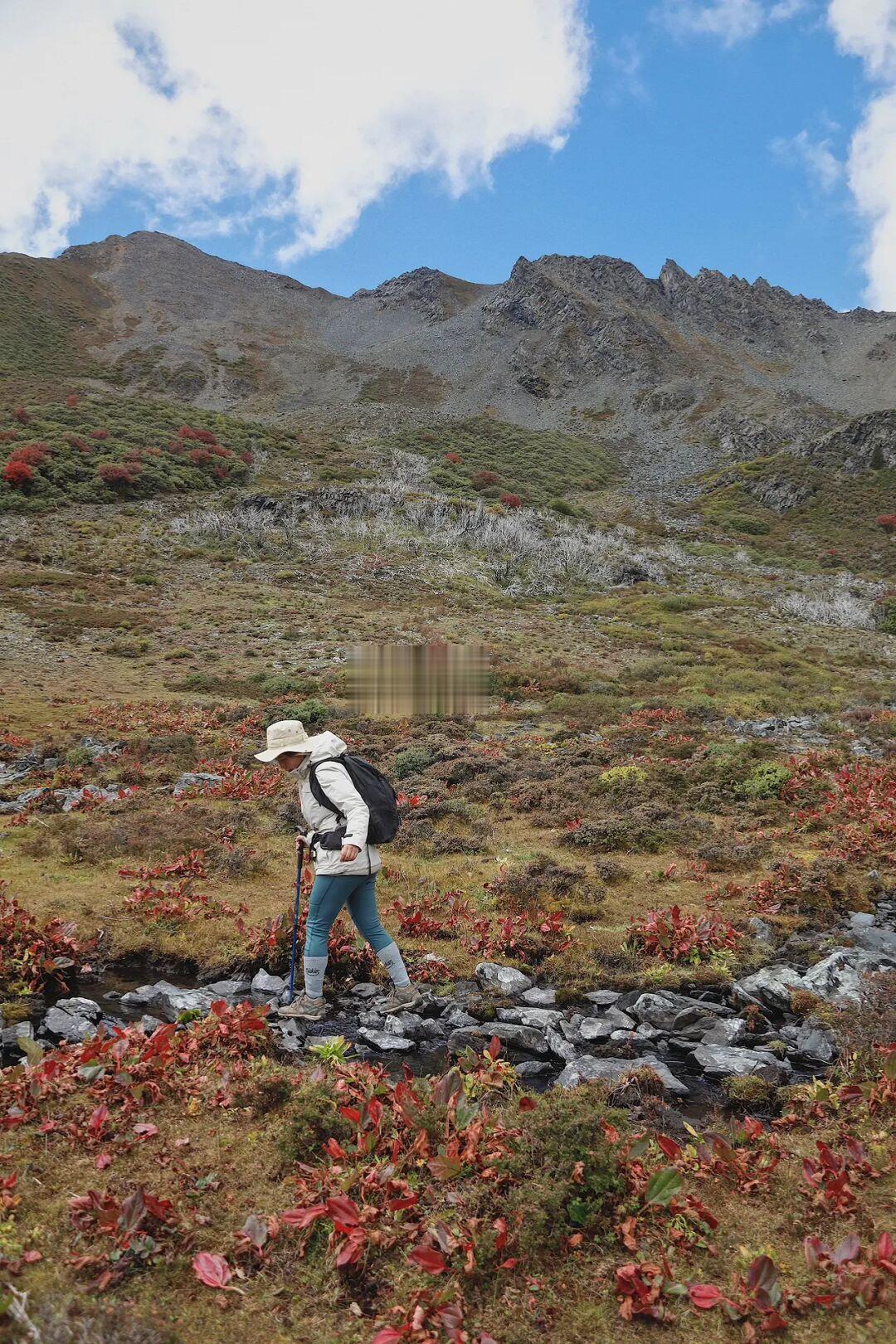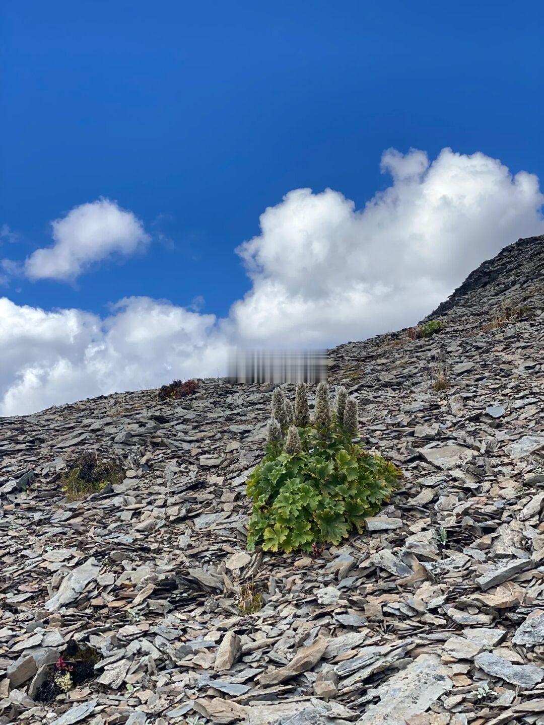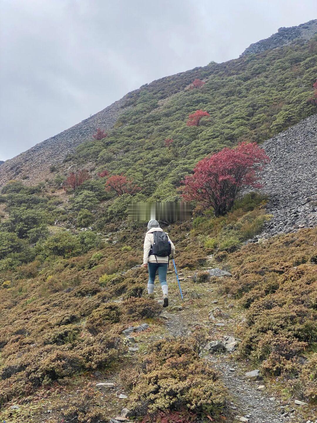 森林起点 4262m - 爬升 - 碎石垭口4781m - 下坡 - 河谷4543m - 垭口看南卡湖4705m - 碎石坡塔黄群 4800m - 垭口 - 杂日纳山顶4900m(看央知措全貌)