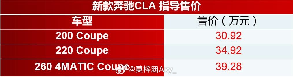 #汽车资讯# 新款奔驰CLA上市 售30.92万元起