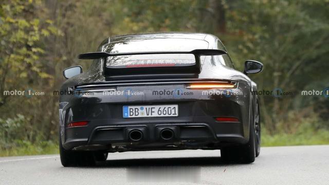 车身侧面以及尾部也都没有太多伪装。两个排气口的位置更加居中,保险杠也因此做了重新设计。我们曾看到911 GTS在测试中既配备了像原型车一样的固定翼,也配备了可伸缩式的扰流板。无论最终的形式是什么,猜测保时捷似乎正在评估不同的空气动力组件。