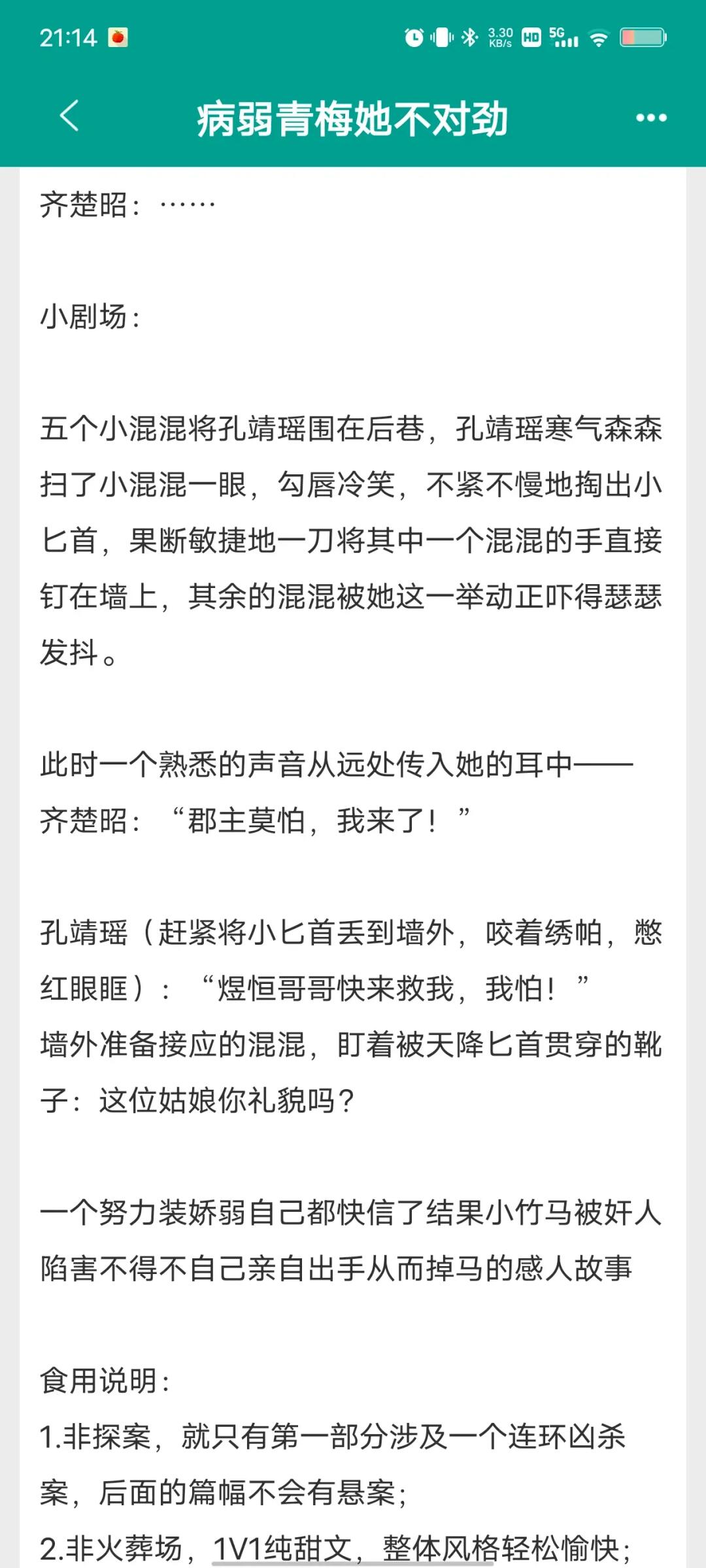 《病弱青梅她不对劲》by长青鸢 刚完结的新文,一共81章 假装柔弱的心机郡主vs口嫌体直的落魄将军, 青梅竹马顺利he,男女主双向奔赴,甜宠无虐 女主假装柔弱,后期掉马装不下去了。 男主认清自己的心就大胆追爱了。 向奔赴