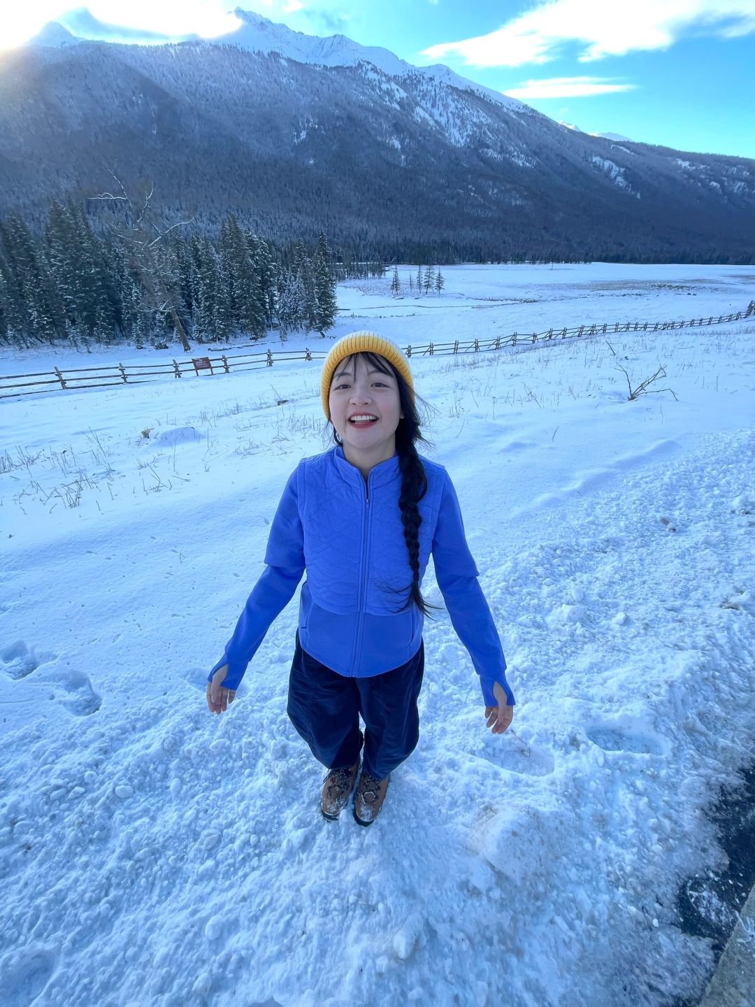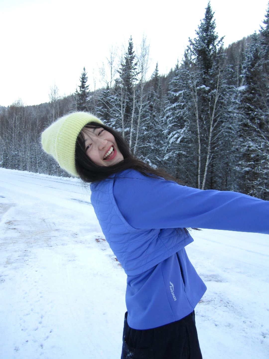 在室内和车上都很暖和,白天穿个外套就可以出去玩儿啦。来北方玩儿就不穿黑白灰了,带了索康尼全新推出的primaloft气凝胶裁片棉服,贴身舒适很保暖,里面穿一件速干外面再加一个外套在新疆下雪天都是完全ok的!另外它使用的Primaloft气凝胶有拒水功能,在雪地里跑跑跳跳打滚儿玩雪也不会被雪水弄湿衣服,虽是棉服却做到了轻量便携又同时保暖,让冬天也不再那么臃肿,最重要的是蓝紫色外套在雪地好出片!喜欢喜欢~