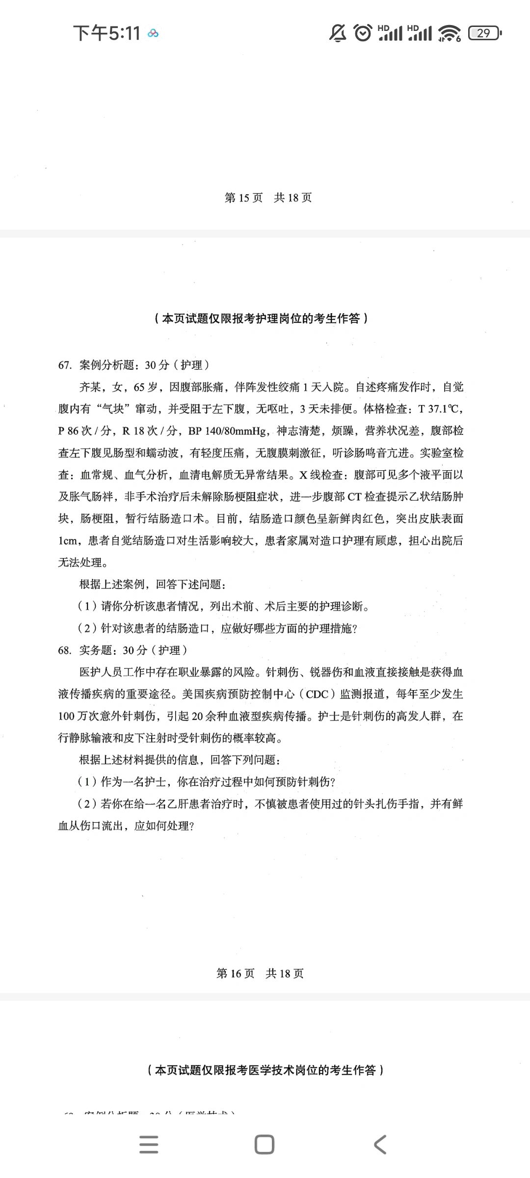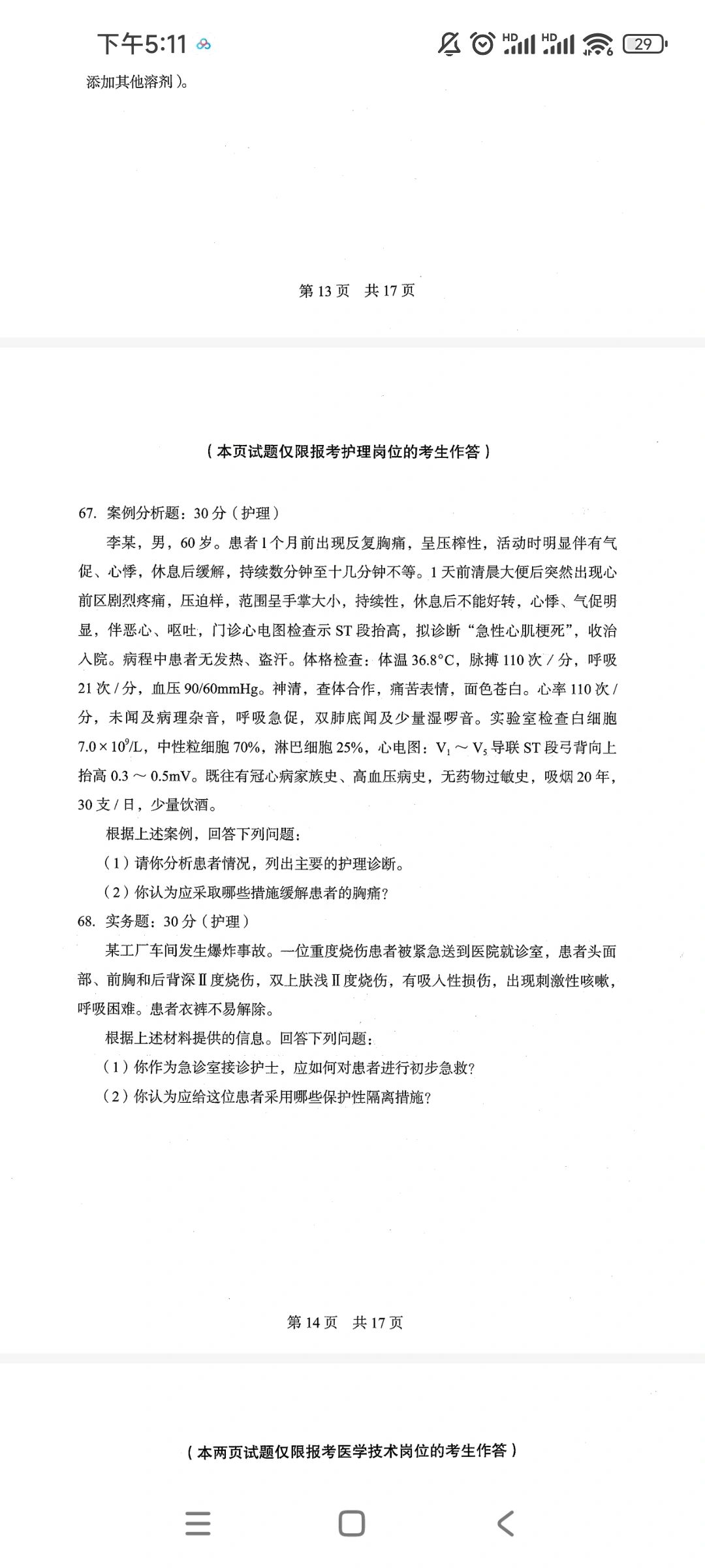 事业编联考|护理岗主观题|e类护理大题
