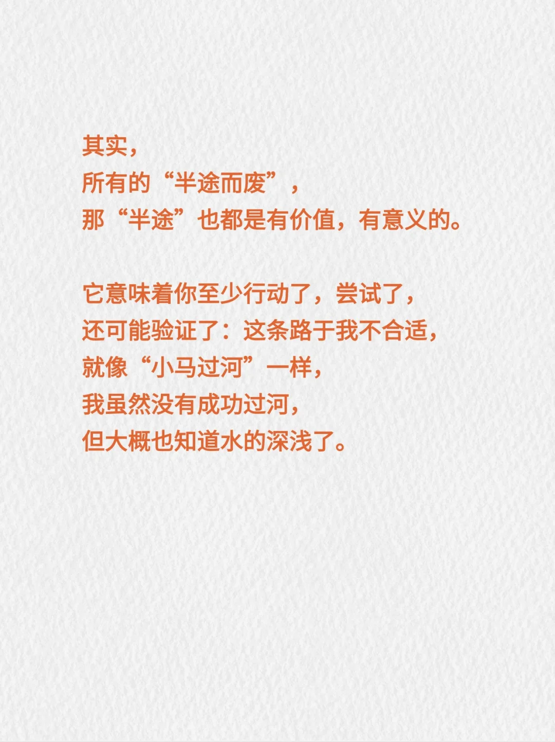 其实,所有的“半途而废”,那“半途”也都是有价值,有意义的。