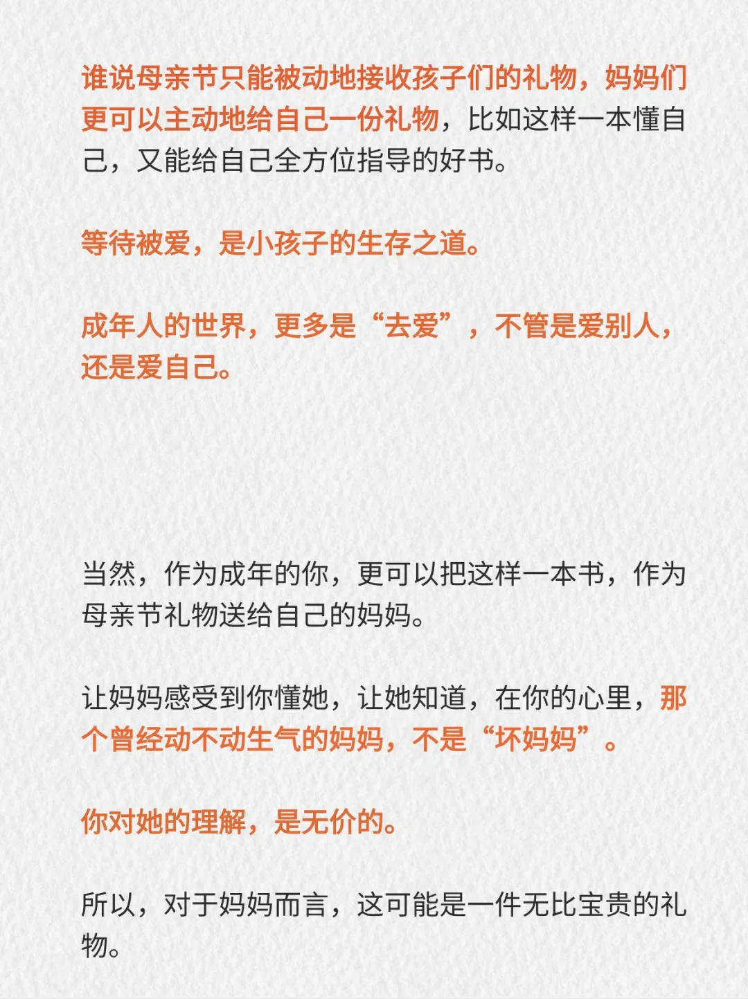 💁谁说母亲节只能被动地接收孩子们的礼物,妈妈们更可以主动地给自己一份礼物,比如这样一本懂自己,又能给自己全方位指导的好书。