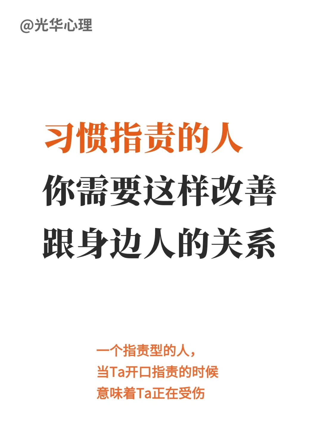 基于我们无数次的咨询经验,以及我自己的成长经历,当我们在指责的那一刻,其实自己是在受伤的,但我们又不愿承认或看到自己的伤(因为自己不愿示弱,要一直处在一种“强”的姿态),所以就选择一种伤害他人的方式来转移这个难受和痛苦。