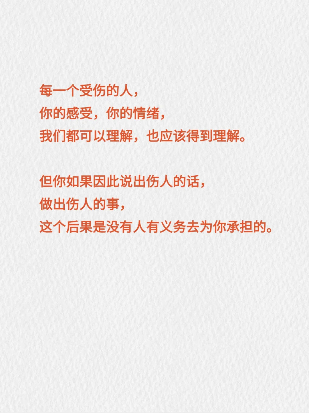✍每一个受伤的人,你的感受,你的情绪,我们都可以理解,也应该得到理解。