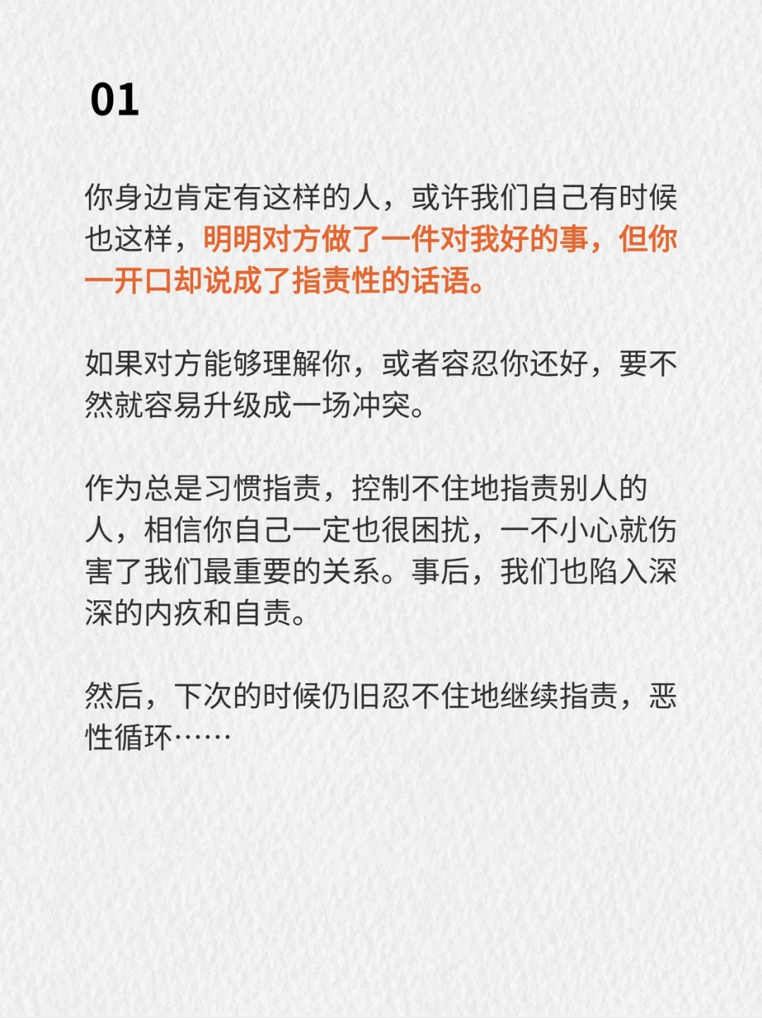 你身边肯定有这样的人,或许我们自己有时候也这样,明明对方做了一件对我好的事,但你一开口却说成了指责性的话语。