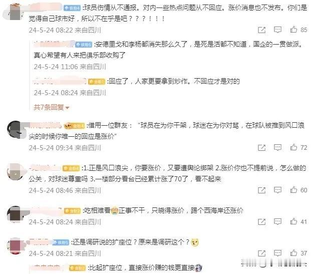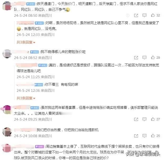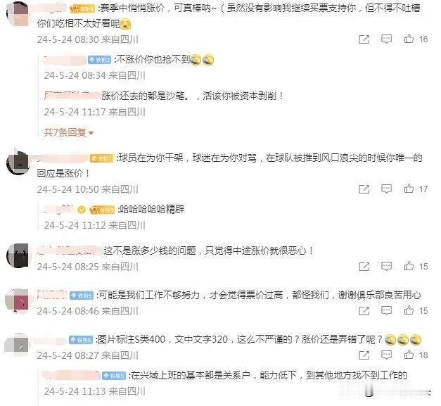 过分了!成都蓉城门票涨价引起球迷各种不满,作为中立球迷对成都蓉城球迷表示支持! 不是不不可以涨价,你得看什么时候涨价,还得给球迷带来更好的体验感吧! 赛季未开始涨价肯定没人说你,你看球市火了,球票抛售多了,开始坐地起价,被喷活该! 既然你涨价,就应该提供更为优质的服务吧!最后是服务没有提升,主场成绩又差,球迷拿钱买罪受?被球迷喷活该!