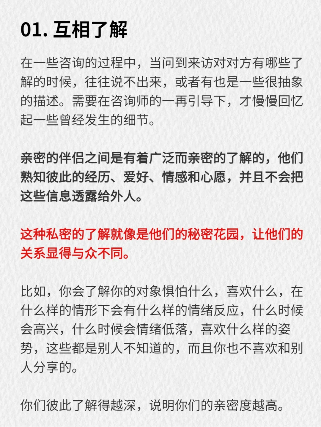 亲密的伴侣之间是有着广泛而亲密的了解的,他们熟知彼此的经历、爱好、情感和心愿,并且不会把这些信息透露给外人。