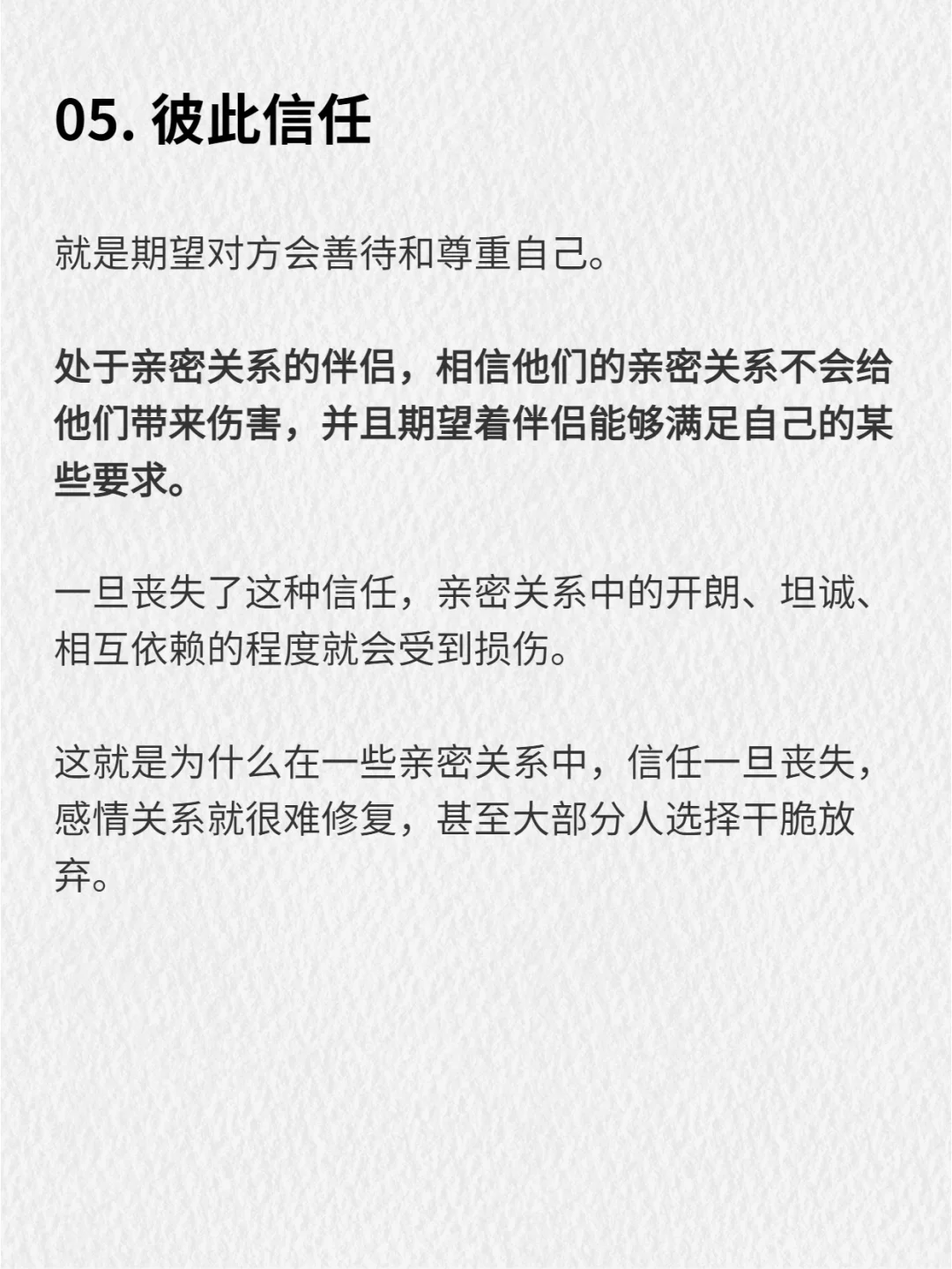 处于亲密关系的伴侣,相信他们的亲密关系不会给他们带来伤害,并且期望着伴侣能够满足自己的某些要求。