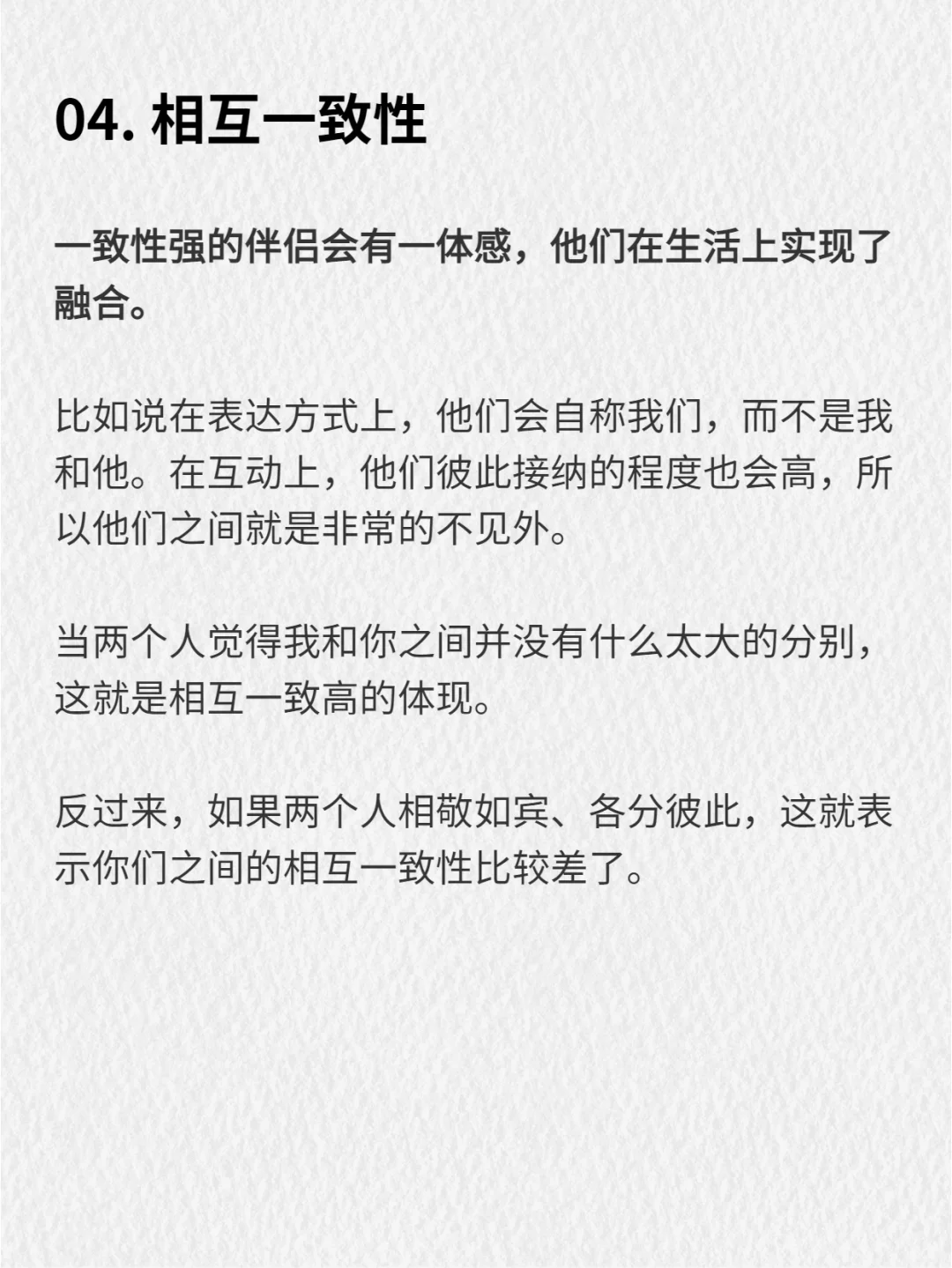 当两个人觉得我和你之间并没有什么太大的分别,这就是相互一致高的体现。