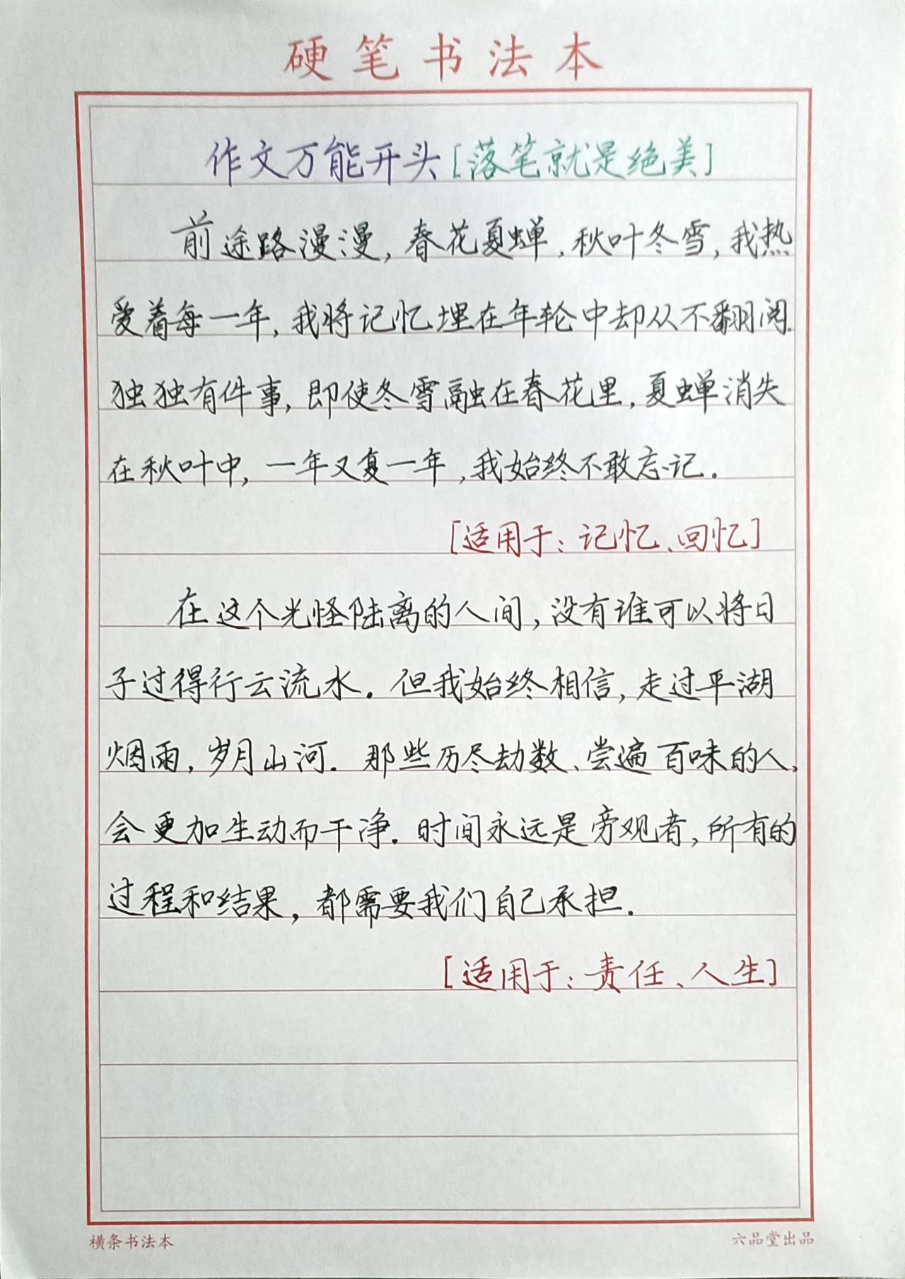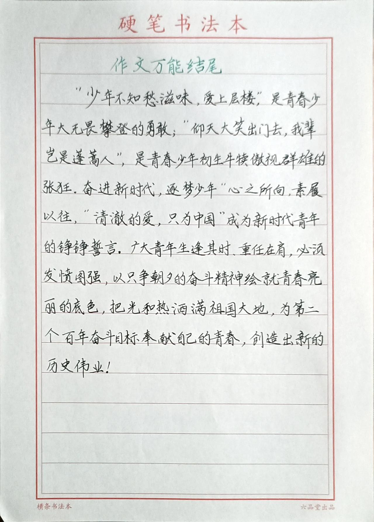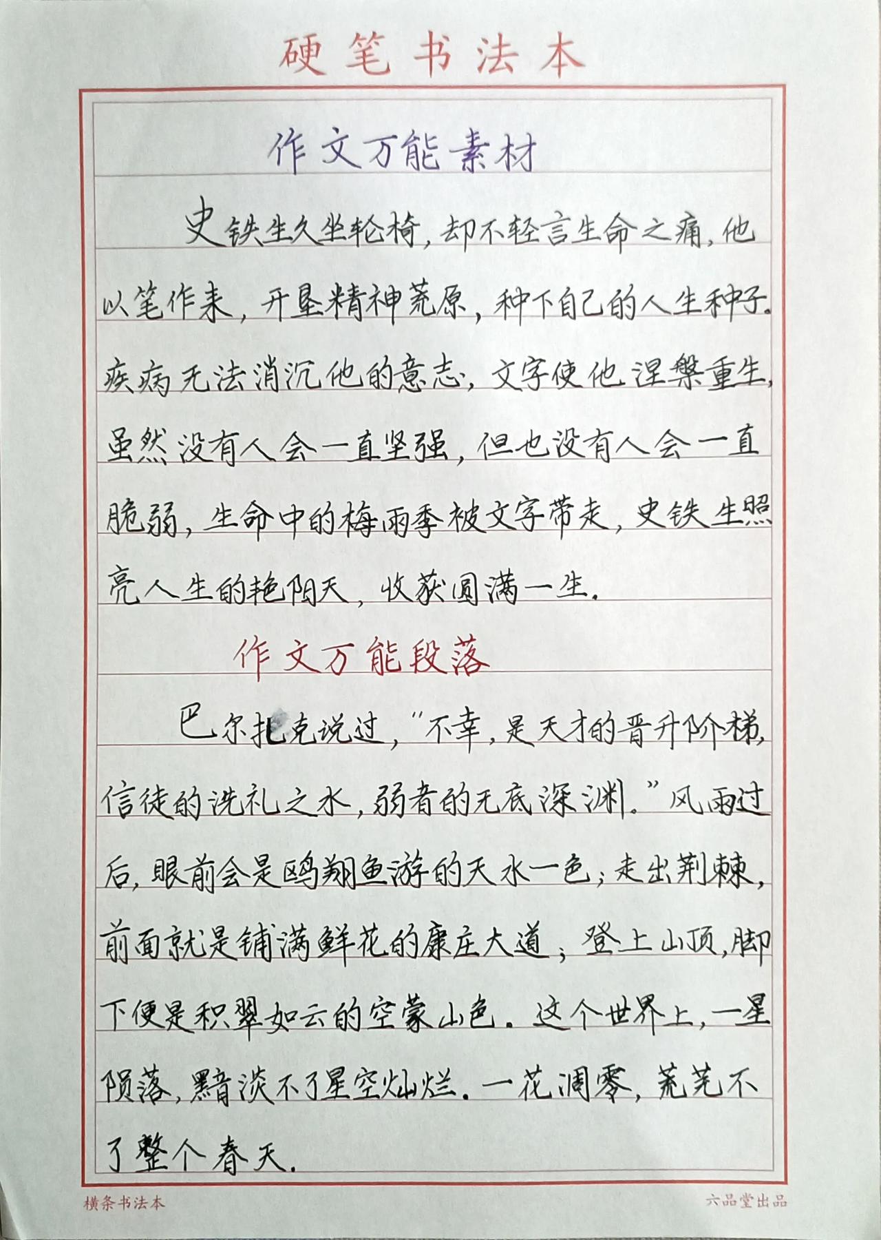 又是一年高考季,今年高考人数1291万, 竞争越来越激烈,见过了太多的无奈和遗憾! 有些高分考生,就因为差一、两分与名校失之交臂! 有更多的普通考生,就因那么几分而与大学无缘! 其实命运,有很多时候是掌握在自己手中的! 就比如你能写一手好字,还比如你能写出优秀的作文…… 那么,整洁清晰的卷面,就很可能让你多拿几分! 是不是命运就改变了呢?! 下面是丰哥用“考试体”(也叫楷书快写)为大家分享的绝美作文素材,赶紧收藏,抓紧练习! 万一,下一个改变命运的人就是你呢! 关注我@丰哥实用写字 一手好字,一生自信! 横竖撑天地,撇捺写人生!