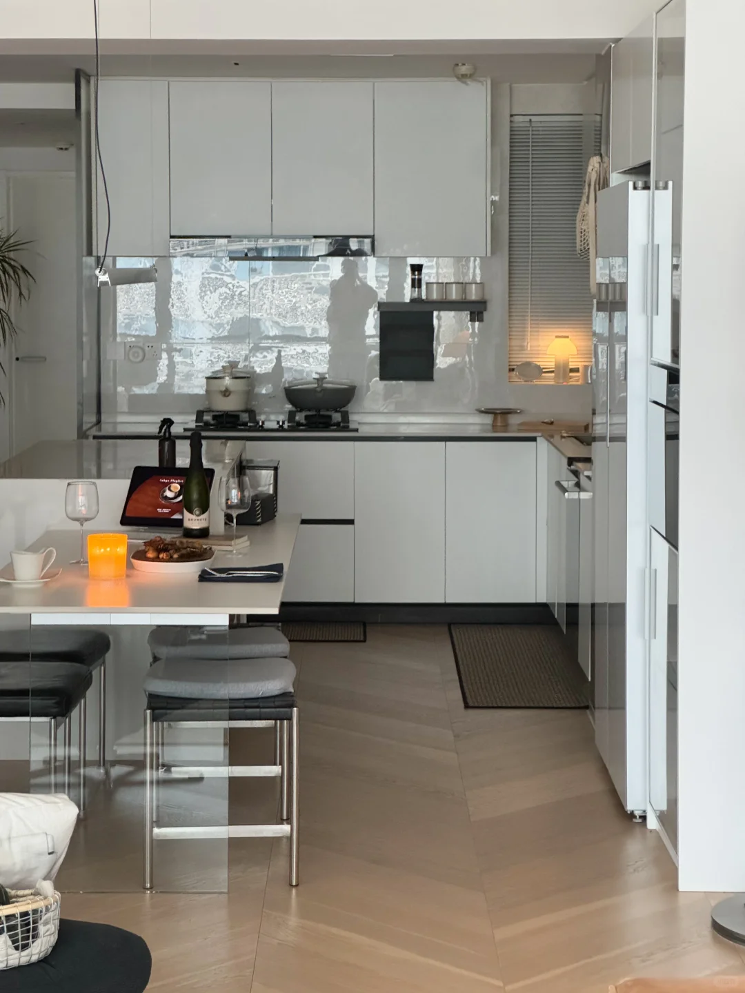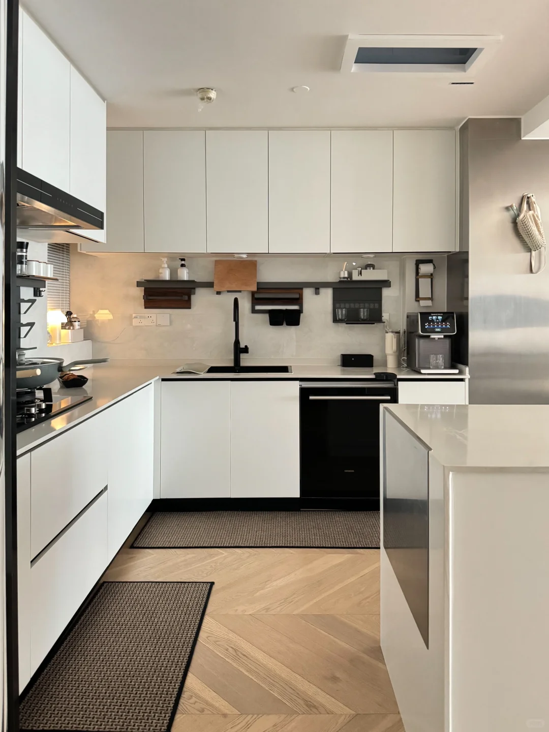 总装修40w,但重点全在这! 作为一个三十多岁的未婚独居的单身汉来说 一个好看又好用的懒人厨房 肯定是装修的重点 我家做的开放式厨房 所以厨房收纳就很重要 除了在能利用的空间 都做了整体收纳的定制橱柜 墙面也做了 可以DIY 调整的置物架 这样平时不用的可以放柜子 平时常用的就会放在外面 美观且又实用 功能上我家厨房 除了配备传统燃气灶 吸烟机 当然还有现代年轻人偷懒都会用到的 洗碗机 蒸烤一体机 厨余垃圾处理器 饮水器 自动咖啡机 这些电器真的已经成为我日常生活里 必不可少的一部分 作为一个单身手残党 平时宅家的一日三餐 都是在这个厨房里完成 我最爱用的就是这台 凯度的ZDpro二代蒸烤一体机 [向右R][向右R][向右R][向右R] 蒸烤一体的嵌入式无把手机身 更好的融合在风格简约的现代厨房 双热风的设计 比传统的单风扇预热更快 早上几分钟就可以热一个可颂 方便快捷 得益于它的智能模式 上下独立控温的烘烤功能 平时做些烤羊排/牛排/鸡肉(带食物探针) 基本上就是有手就会 还有蒸炖功能 平时想偷懒 蒸个鱼或海鲜 不开明火 也能快速搞定美味营养的一餐 另外它触摸打开的模式也特别有科技感 而且再也不用怕 打开的时候 热气扑面而来 厨房是家重要的功能之地 我常说它是一个家的心脏 厨房的合理安排 可以从根本上改善我们的生活品质