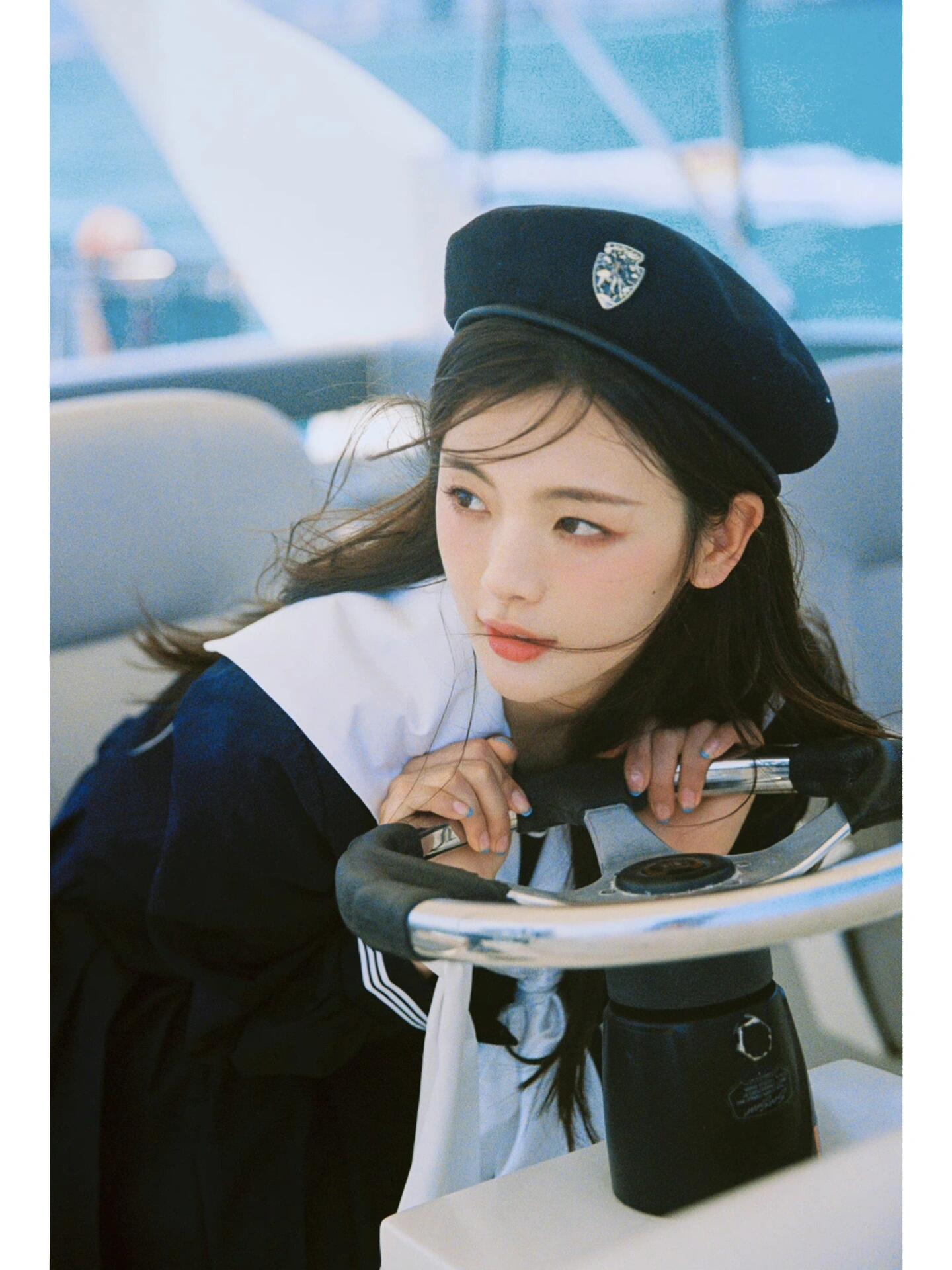 穿泳衣的李凯馨太可了!海军帽加分,美翻了!