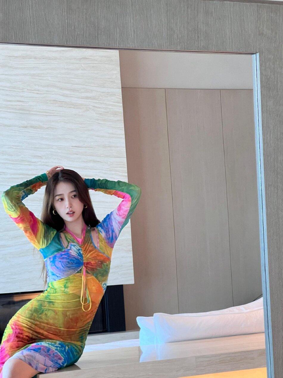 虞书欣在微博上晒出了自己穿彩色包臀裙的随拍照片,让人眼前一亮。 彩色包臀裙是一种非常有个性和魅力的搭配,可以突出身材的优势,也可以增加色彩的活力。
