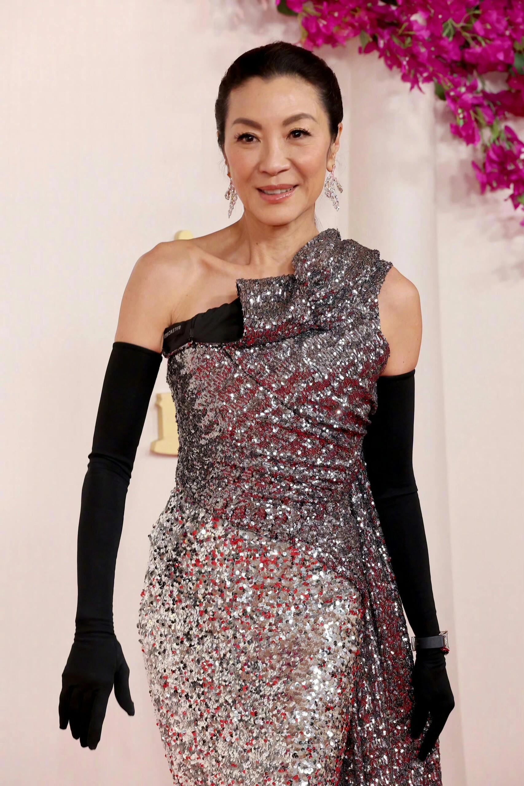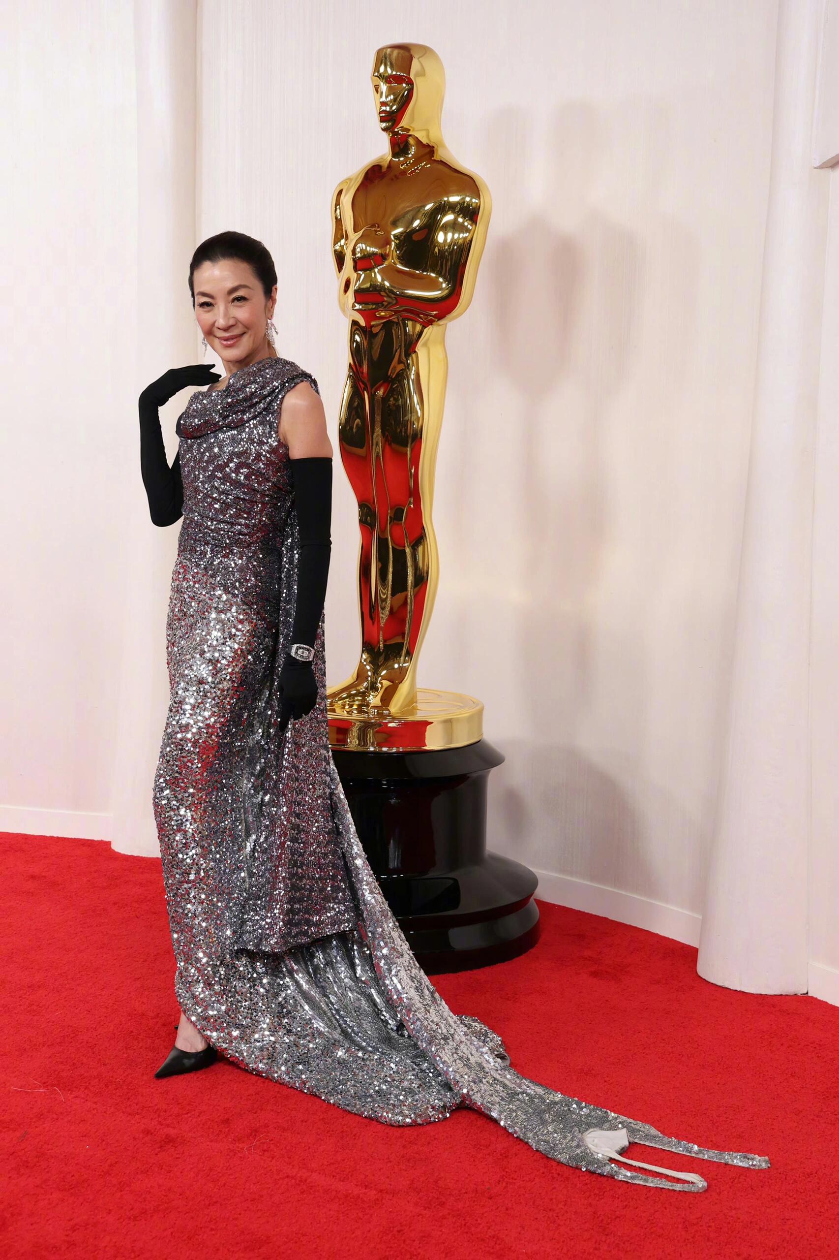杨紫琼亮相奥斯卡红毯,定制礼服,闪闪的亮片裙,影后的魅力气场