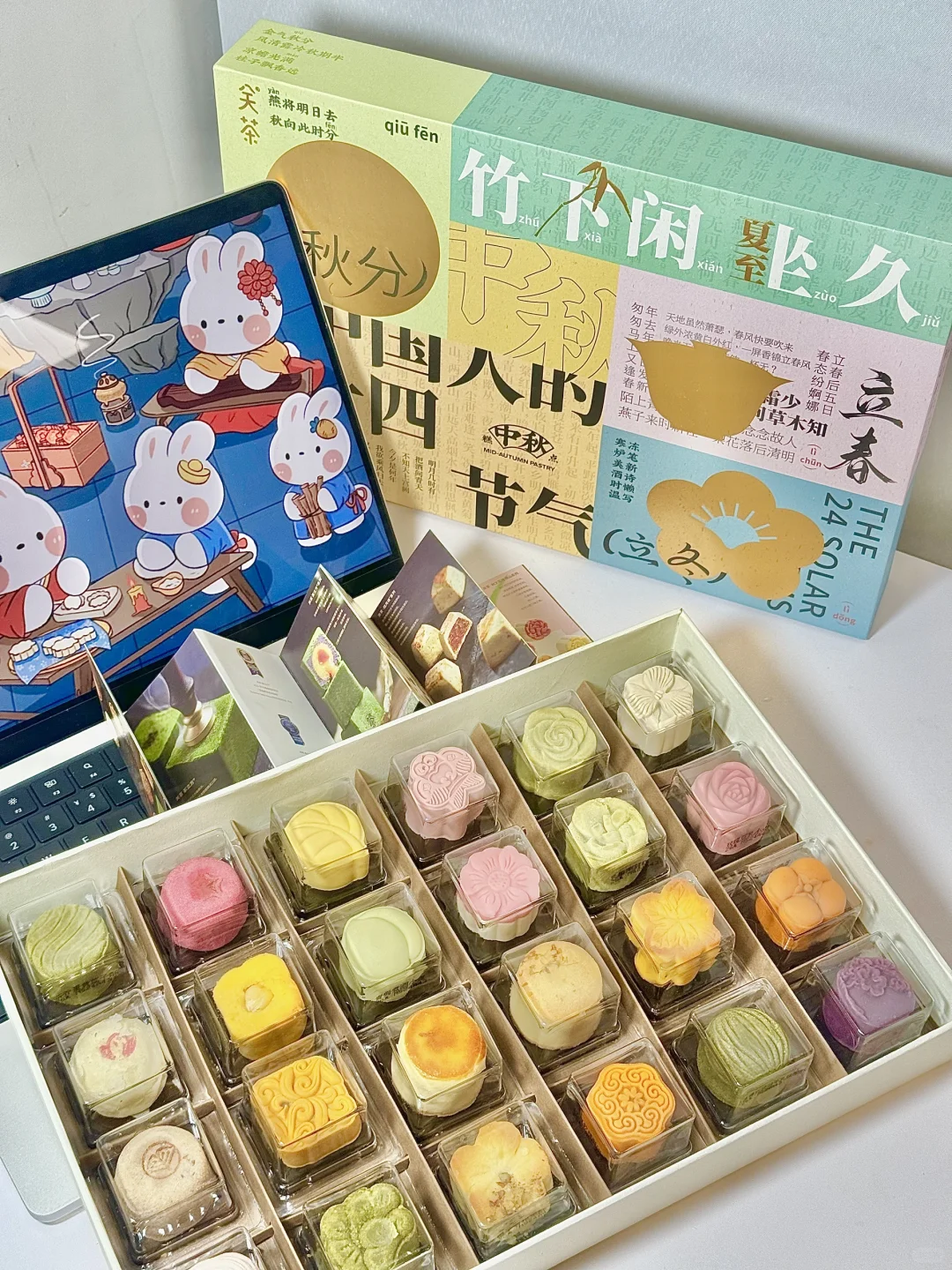 我一拆快递我妈就说 你比去年还会买啊! 好漂亮的咧! 24节气月饼 每一个的味道和图案都不一样 每吃一口,都有新鲜感! 不得不说,这届月饼好有网感