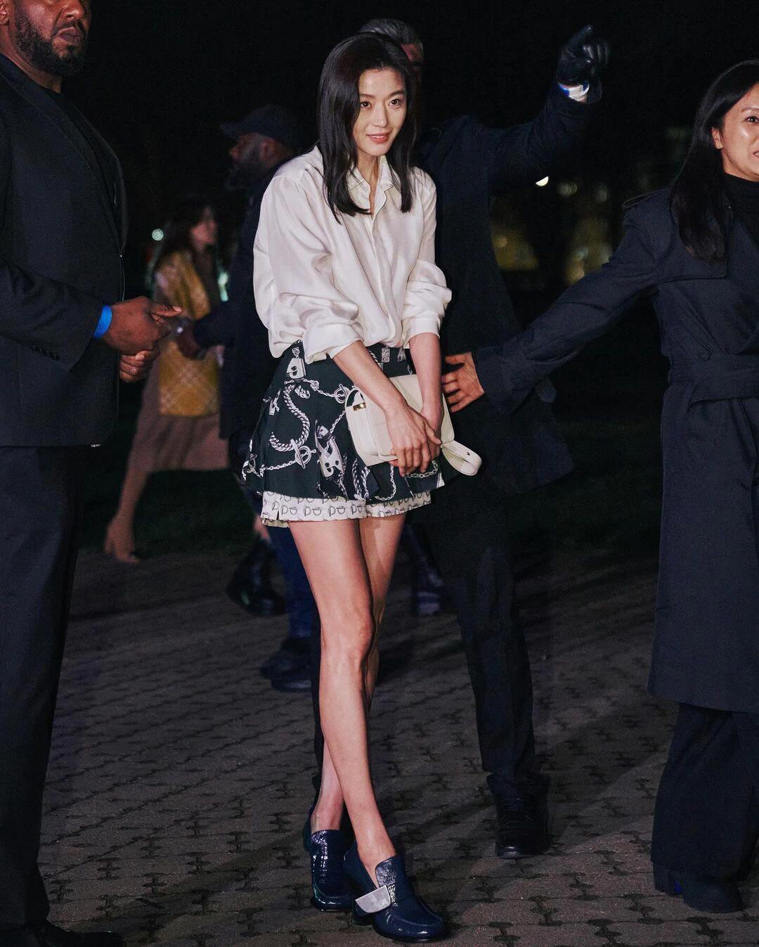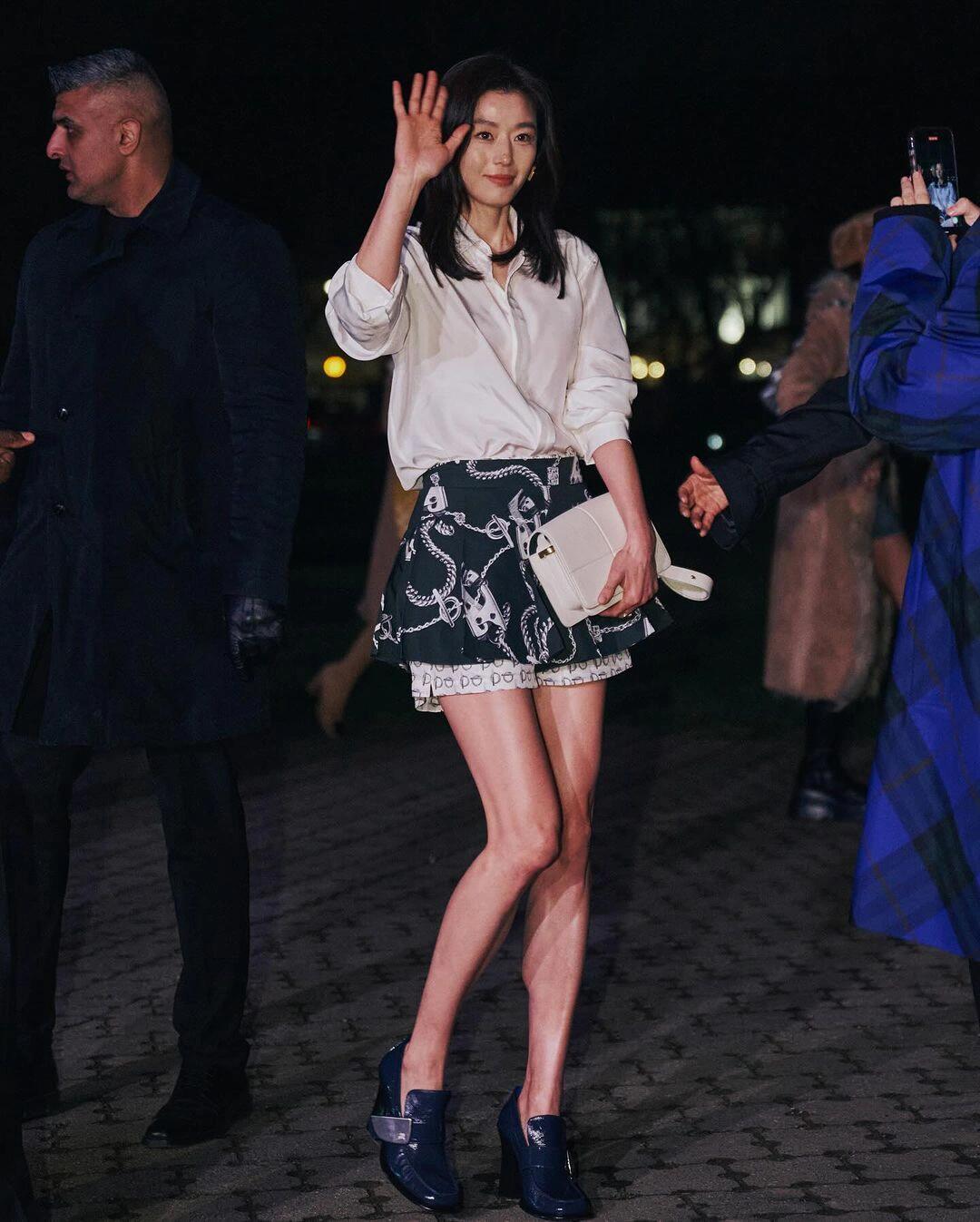 全智贤这身行头绝了,白衬衫加印花短裤,甜飒兼备,时尚圈的教科书啊!真心美翻了~