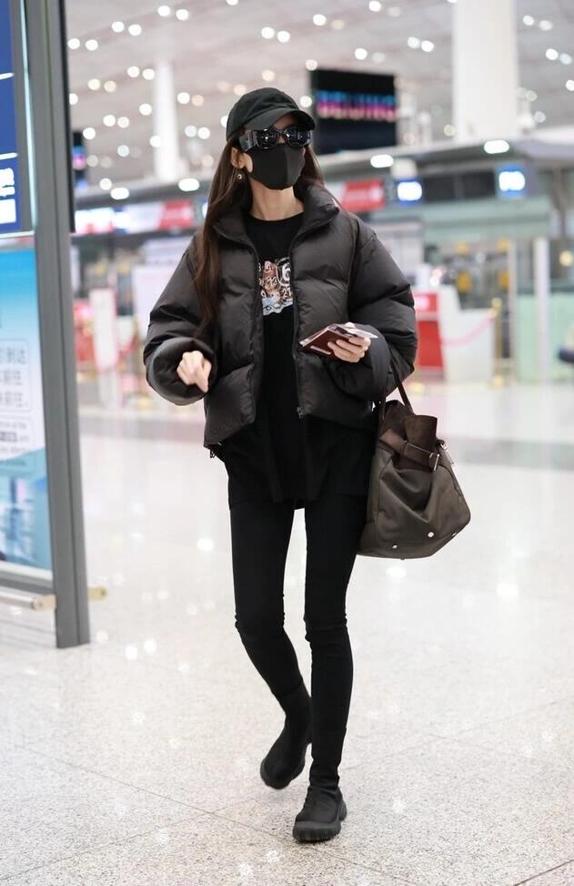 娜扎这是全黑look啊,生怕别人不知道她是夜行者呢,这不就是流行低调炫酷吗?