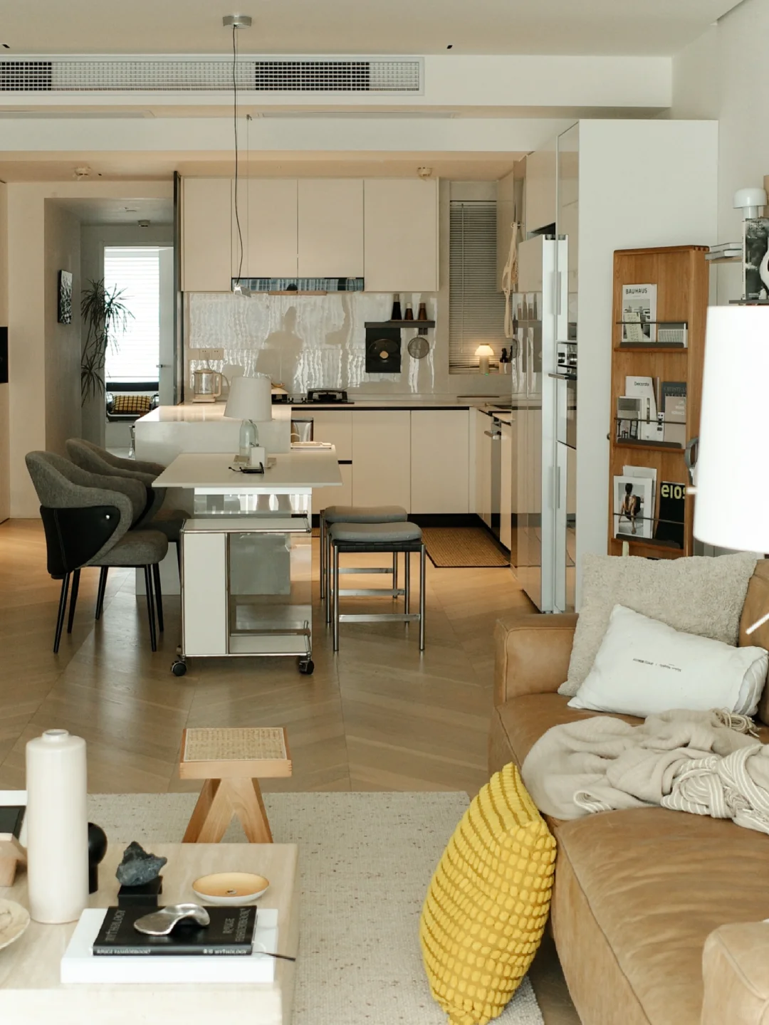 收到收到很多后台私都在问我家的装修,翻遍以及结合自己的个人经验总结6个装修顺序思路👇 step1️⃣保持色彩平衡 在打造一个和谐而高级的空间时,色彩平衡是至关重要的。选择与主配色相协调的同色系基础色,在空间色彩搭配上,我们应该遵循减法原则,避免过多色彩的堆砌。 step2️⃣适当增加对比度 如果空间颜色过于单一,可能会显得单调乏味。因此,通过软装的巧妙搭配来增加色彩的对比度,不仅能够提升家的视觉吸引力,还能增强空间的高级感。 step3️⃣重视灯光氛围 灯光的运用也是营造高级感家居氛围的重要手段。例如,吊顶的悬浮灯带能够视觉上增加层高,沙发旁的落地灯等 step4️⃣加入自然元素 在硬装和软装中,采用天然材料如原木和石材,它们的独特纹理和温润质感,能够为家居增添一份高级感。同时选用绿植、鲜花甚至是宠物作为空间的点缀。 step5️⃣客餐厅很重要 餐桌椅的搭配真的会是一个家的点睛之笔,选择色系相同的会更好一些。我更推荐椅子混搭,因为这样我们的椅子既可以是一把单椅,也可以作为办公椅阳台椅。因此在椅子上的选择上我也踩过一些坑,很多看起来好看,但是真的坐起来不舒服,如果多功能的话,建议选一把舒适品质好的椅子。推荐逆时针家的安吉椅!真的好好好舒服,无直角的造型设计 把人体的曲线融入其中 扶手很有包裹感,他们家都是十几年老师傅手工制作的,有一说一,材质手工都hin🉑 在客厅的软装搭配中,传统的套装沙发常常被认为是个灾难。这种3+2+1组合式沙发的造型单一,不仅占据了大量的空间,还让整个客厅显得呆板而乏味。相比之下,直排沙发搭配单椅的组合则展现出了截然不同的效。,不仅提升了空间的层次感,还有助于打造高级感。 step6️⃣让阳光照进来 自然光的引入对于提升空间的亮度和氛围同样重要。虽然灯光可以在光线不足时提供必要的照明,但自然光是无法替代的。因此,在软装搭配时,应考虑如何引入更多的阳光,让自然光发挥作用,为家居空间带来明亮和活力。 这些是我总结的一些思路 大家根据自己个人情况来,希望大家都能拥有自己的dream house~