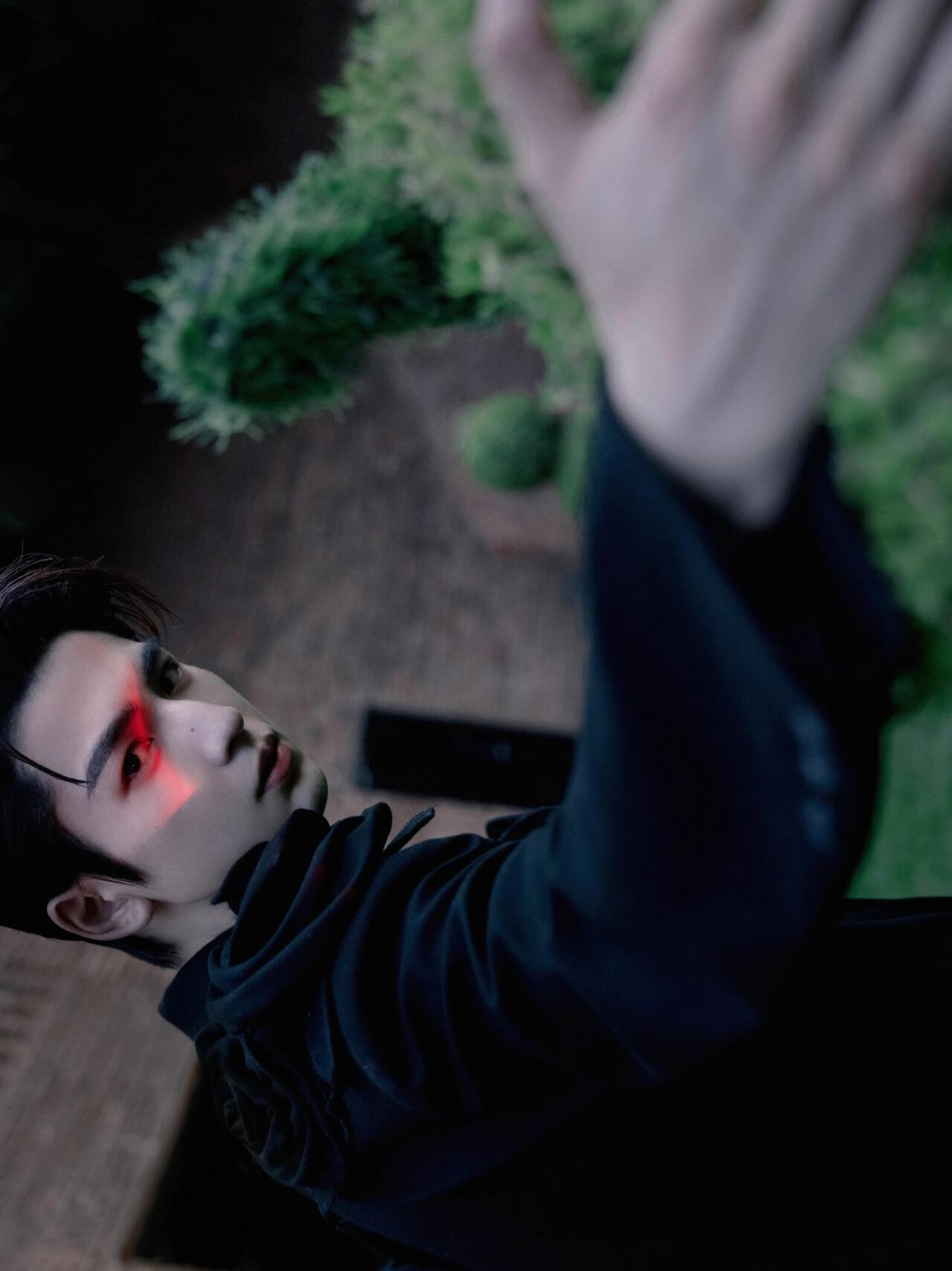 张凌赫·云南旅行寫真集Vol.5 惬意的云南旅拍里 最heavy的一组 手指那张是模特拍着拍着自己冒出的创意 灯落在他的手心 手电筒只能自己用嘴叼着