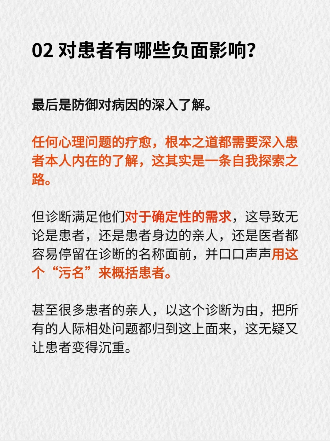 这样的诊断有便于医方针对症状对症下药。但对于患者,不仅没有帮助,往往还带来很大的负面影响(后面着重讲有哪些负面影响)。