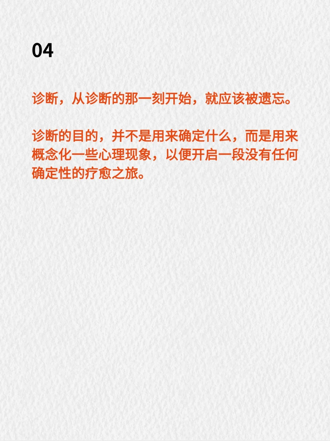 诊断的目的,并不是用来确定什么,而是用来概念化一些心理现象,以便开启一段没有任何确定性的疗愈之旅。