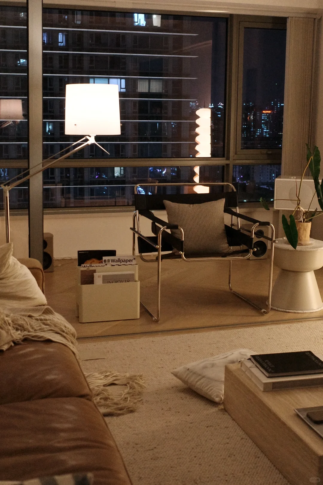 梦想了多少年的夜晚氛围家 终于有了实现的时刻 喜欢台灯和落地灯所散发的慢发射灯光 配合蓝色的夜 黄色的家 浪漫至极