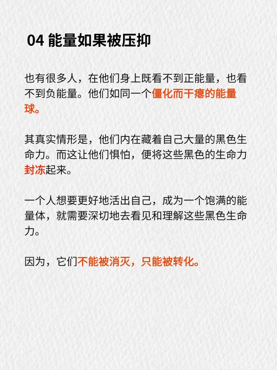 一个人想要更好地活出自己,成为一个饱满的能量体,就需要深切地去看见和理解这些黑色生命力。