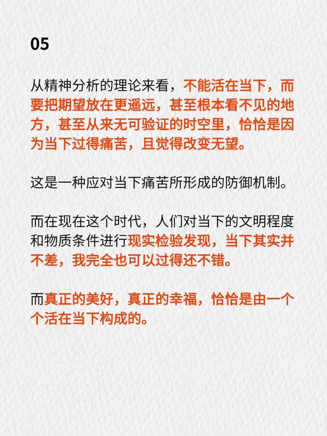 意识到这点会有点哀伤,但很多人也因为不想面对这份哀伤,而形成一种防御,执着于把美好永远寄托在未来的期盼里。