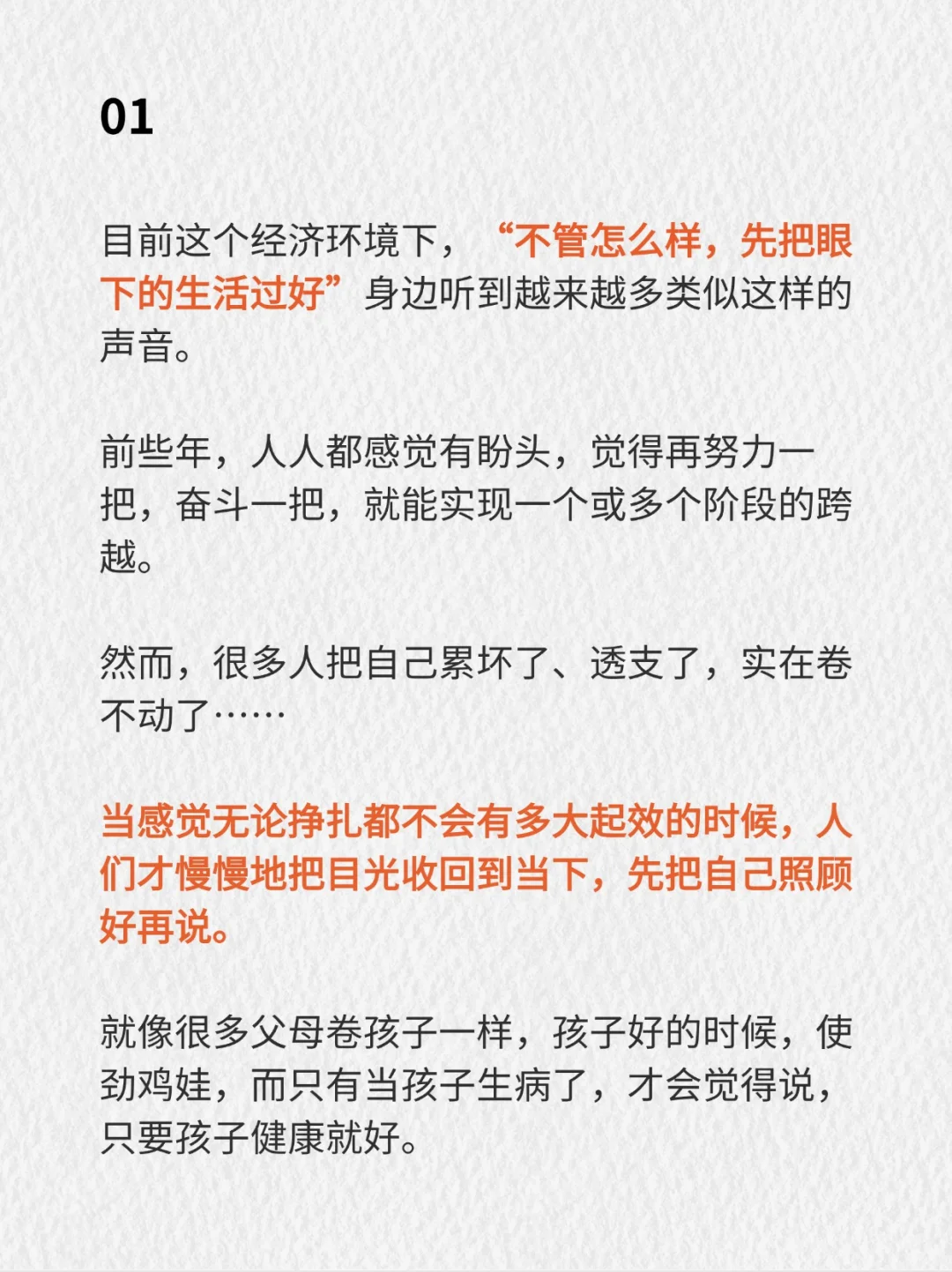 目前这个经济环境下,“不管怎么样,先把眼下的生活过好”身边听到越来越多类似这样的声音。