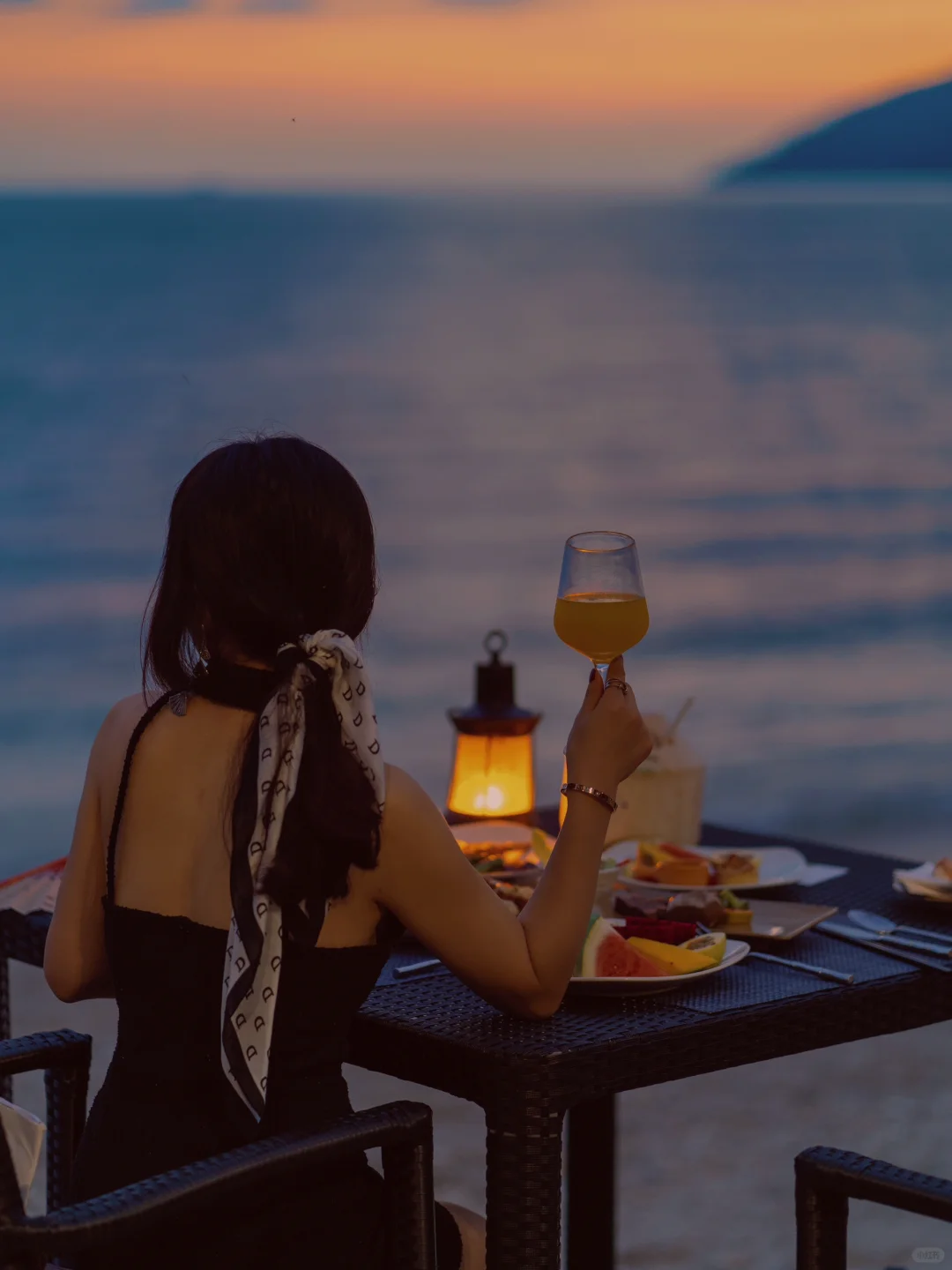🥂在海边餐厅和她享用晚餐,从日落夕阳到夜光烛火,听着海浪🌊、吹着晚风、看着椰林树影🌴,要美食更要美景和浪漫氛围💗