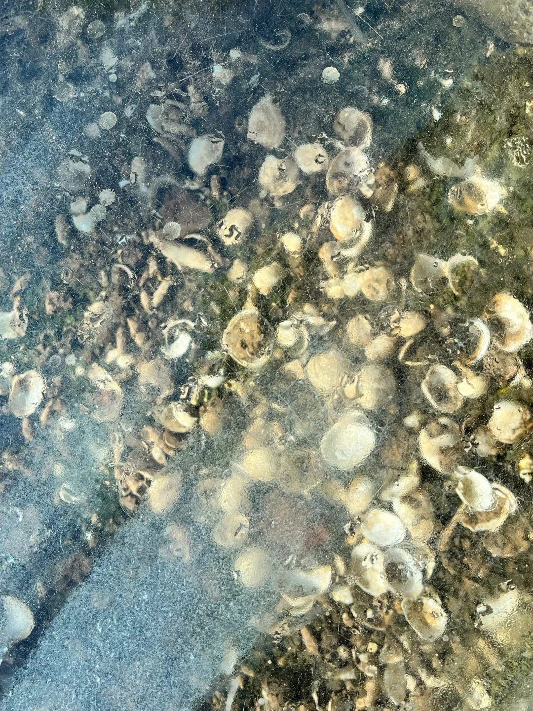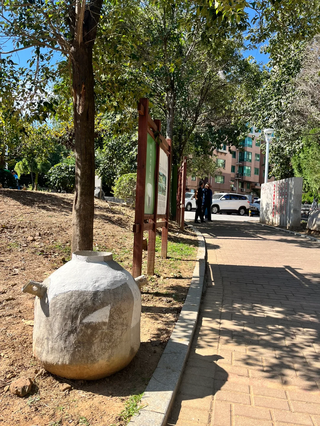 由于早晨气温低,玻璃结上了朝露,只能看到玻璃罩下的土层和一些贝壳🐚🐚🐚反倒是路边被当做垃圾桶的陶罐造型,能让人们更直观感受白石村文化。