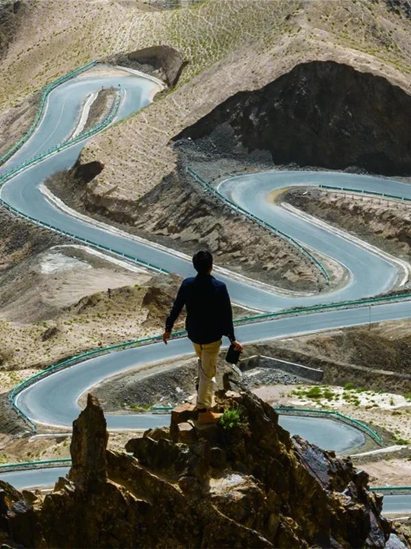 这条蜿蜒曲折的公路,从高空俯瞰犹如一条银色巨龙蜿蜒于大地之上