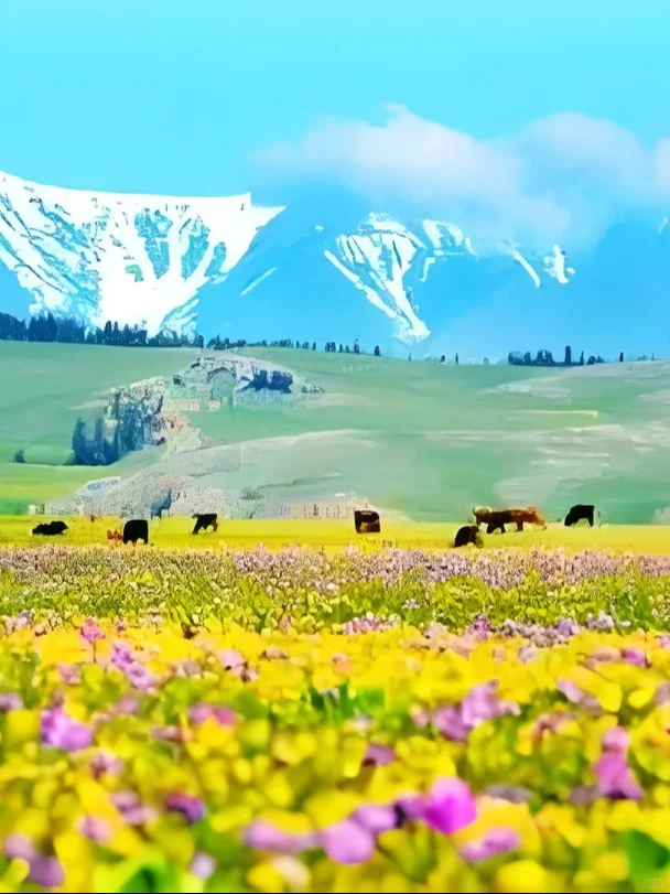 看最丰富的自然景观,雪山🏔、草原🌿、湖泊、花海🌸、胡杨林,沙漠、牛羊...